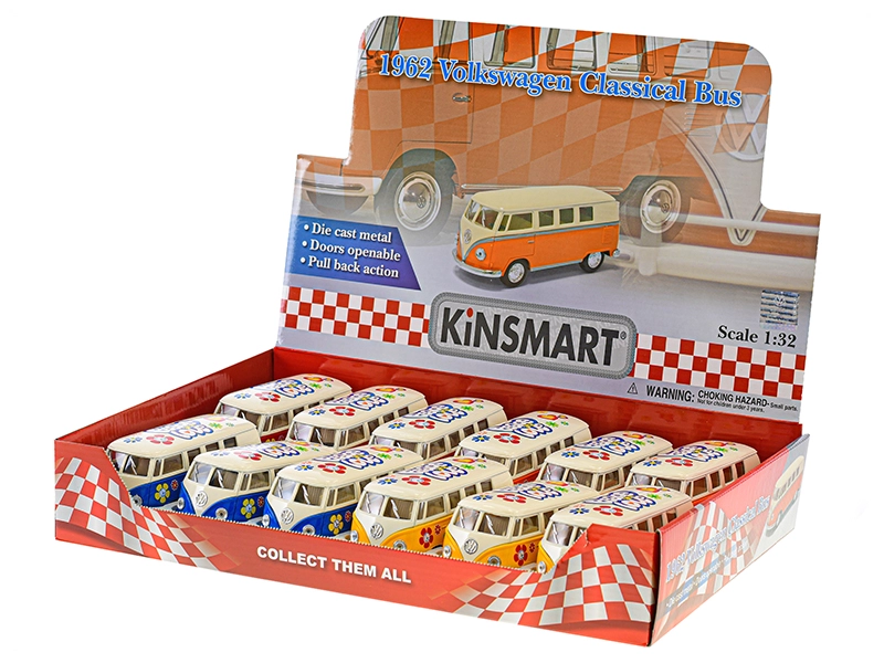 Eine Klassiker, der nie langweilig wird. Der Kinsmart Volkswagen Classical Bus 1962 im Maßstab 1:32 bringt das legendäre Design in 13 cm Länge mit realistischen Details an Karosserie und Innenraum. Durch den Rückzugmechanismus fährt er nach dem Zurückziehen nach vorne und begeistert sowohl kleine Fahrer als auch leidenschaftliche Sammler historischer Fahrzeuge.