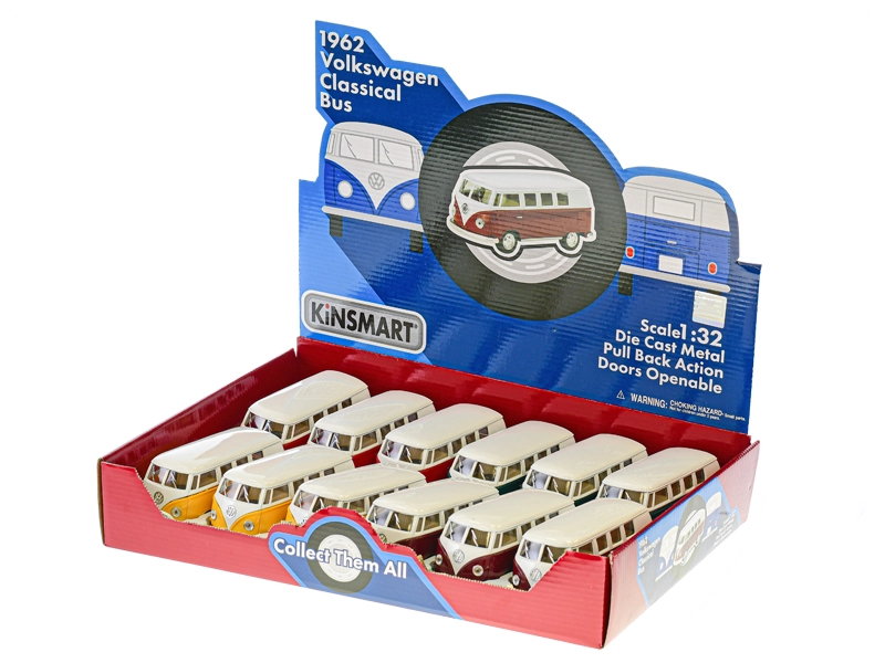 Präzise Karosseriedetails, geteilte Frontscheibe und das markante VW-Logo bringen den ikonischen Look des Kleinbusses in Ihre Sammlung und ins Kinderzimmer.
