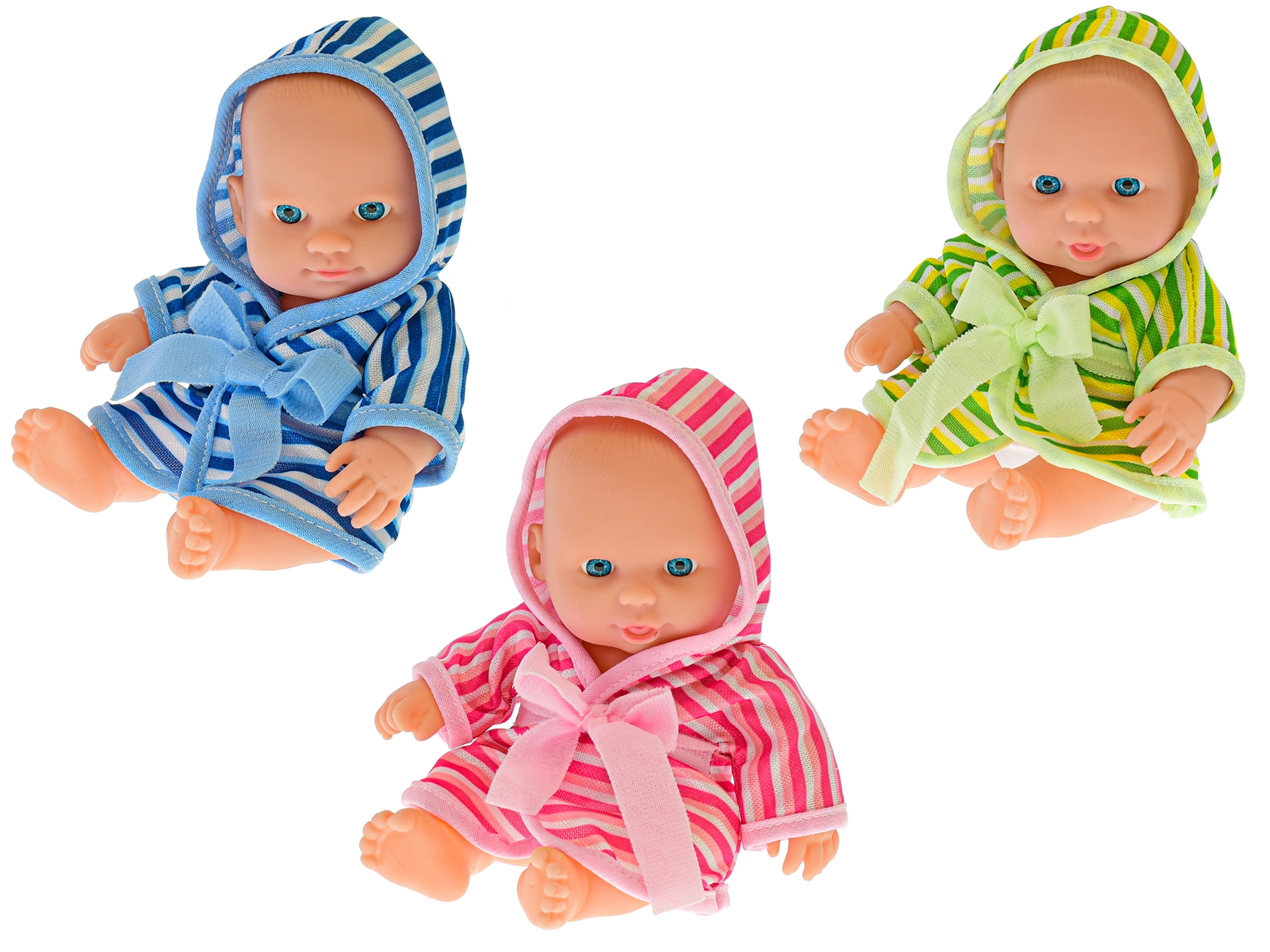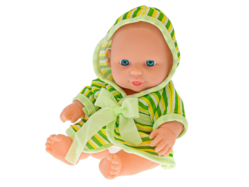 Süßes Baby mit einem stabileren Körper und einem weichen gestreiften Bademantel mit Kapuze – eine Freude für jede kleine Mama. Dank der kompakten Größe von 20 cm ideal für Kinderhände, fördert Fantasie und Rollenspiele und ist in drei Farbvarianten erhältlich.