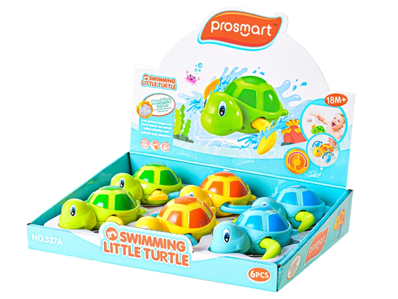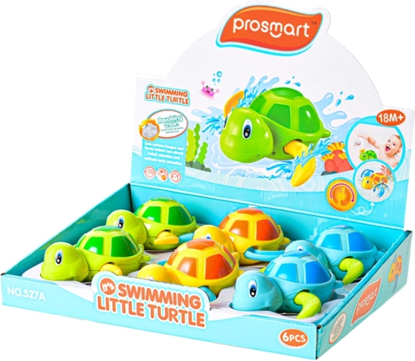 Die schwimmende Aufzieh-Schildkröte ist das ideale Spielzeug für Badewanne und Pool. Einfach den Aufziehmechanismus drehen, und die Schildkröte schwimmt über die Oberfläche. Dank der kompakten Abmessungen können Kinder sie leicht greifen und steuern, während die robuste Ausführung aus Kunststoff für lange Haltbarkeit und sicheres Spielen im Wasser sorgt.