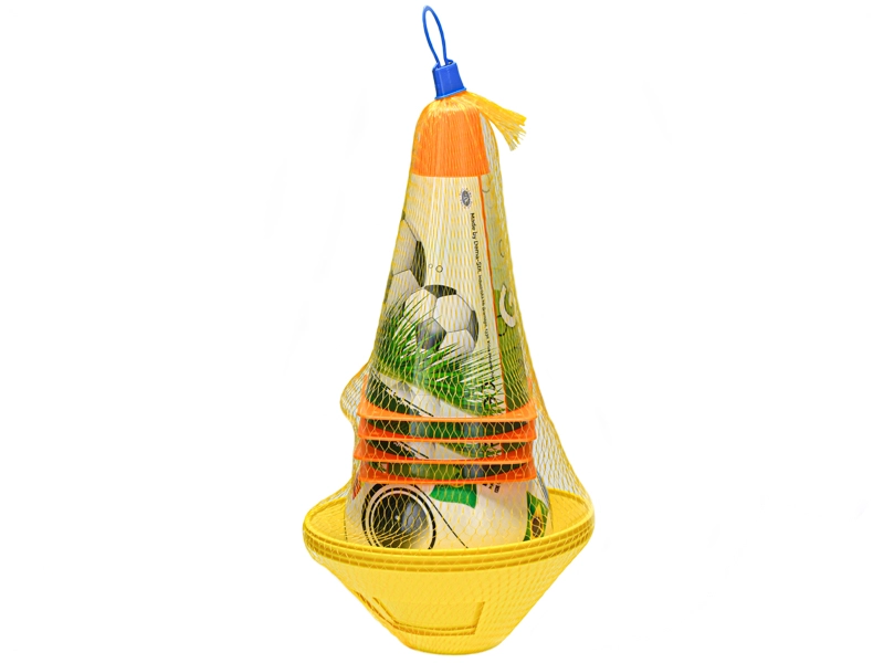 Die praktische Kombination aus 4 Hütchen (18 cm), Markierungsscheiben und einem leichten Ball (12 cm) ermöglicht einfache Trainingsparcours, Hinderniszonen und Mini-Tore. Dank des robusten und leichten Kunststoffs ist das Set kindersicher und lässt sich leicht transportieren und verstauen.