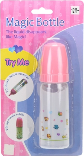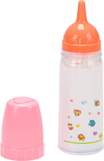 Realistisches Milchfläschchen für Puppen mit 15 cm Länge und Flüssigkeit, die beim Kippen „verschwindet“ und beim Aufrichten wieder zurückkehrt. Robustes Kunststoffmaterial, leicht zu halten auch für die Kleinsten und eine tolle Hilfe zur Förderung von Fantasie und sozialen Fähigkeiten.