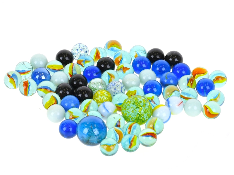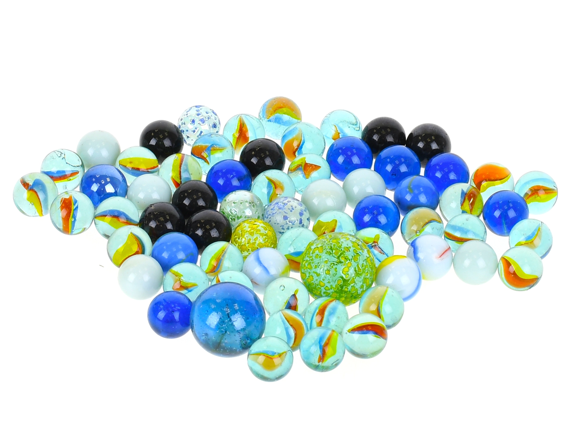 Verschiedene Farben und Größen mit typischen Glaswirbeln machen das Set ideal für klassisches Murmelspiel, Wettkämpfe und Dekoration.