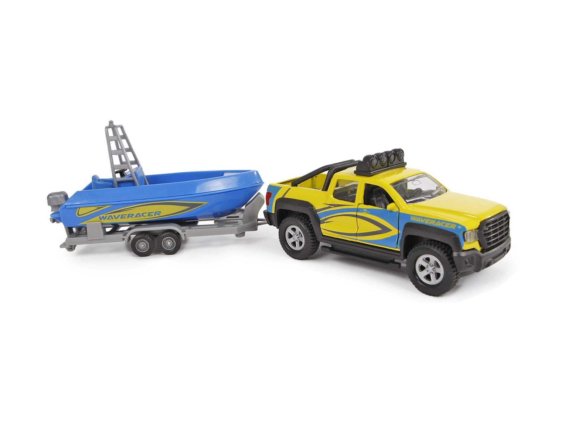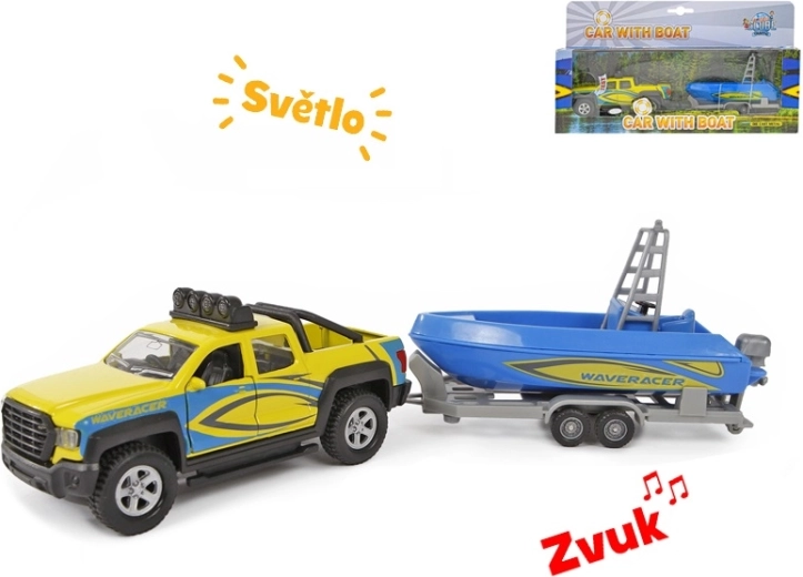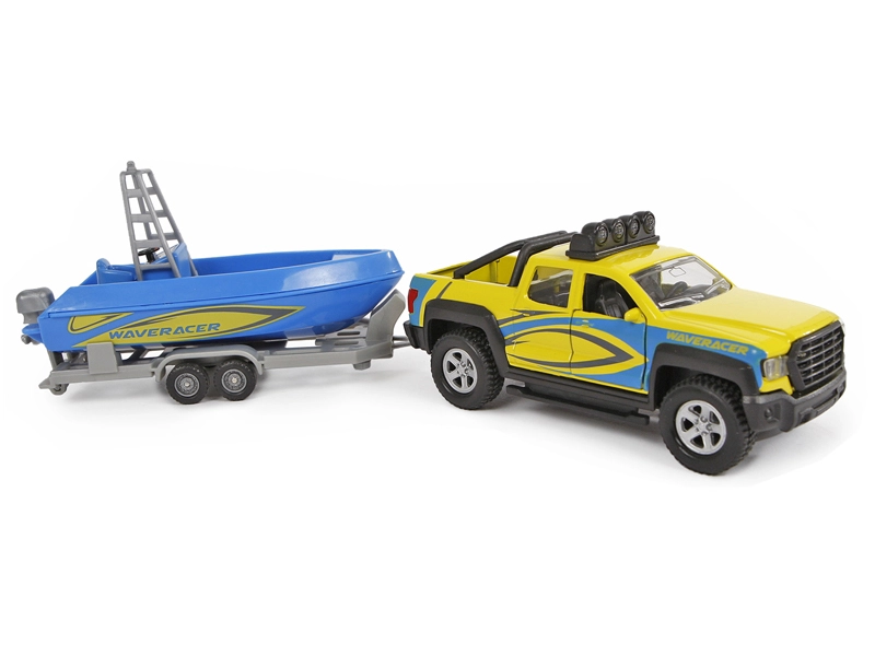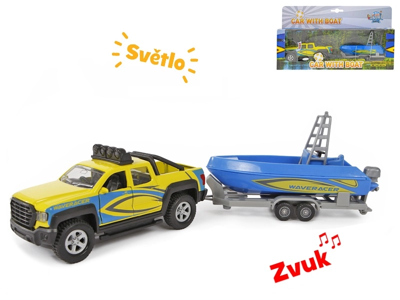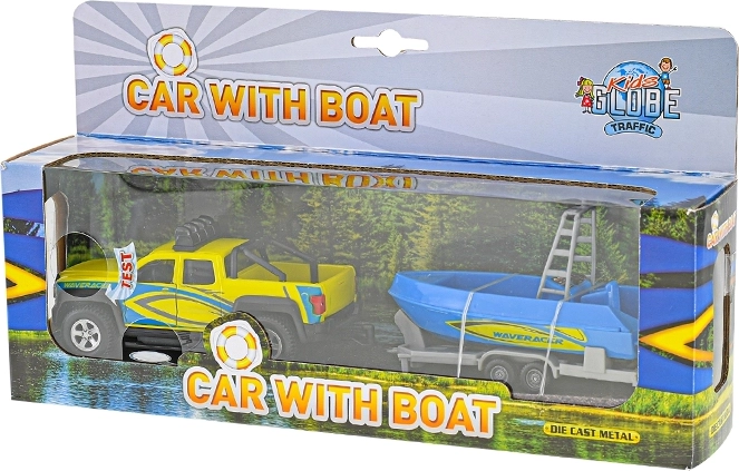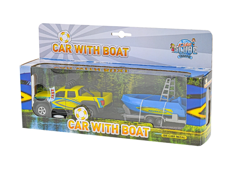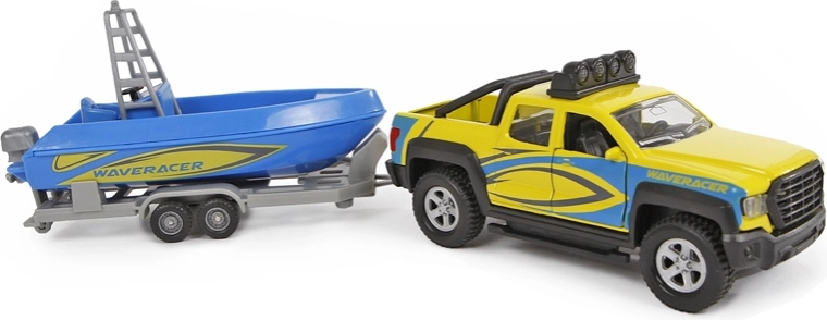 Zum Set gehört ein Anhänger mit einem schönen blauen Boot, mit dem Kinder bei Transportspielen und Abenteuern am Wasser jede Menge Spaß haben. Ideal als Geschenk für Auto- und Modellfans – fördert Fantasie und die motorische Entwicklung.