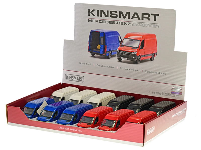 Erleben Sie realistischen Spielspaß mit dem Mercedes‑Benz Sprinter von Kinsmart. Treue Karosseriedetails, Proportionen im Maßstab 1:48 und ein präzise ausgearbeiteter Innenraum machen ihn zu einem großartigen Geschenk für kleine Fahrer und leidenschaftliche Sammler. Dank der öffnenden Türen und dem funktionalen Rückzugmechanismus (Pull‑Back) ist das Spielen spannend und intuitiv.