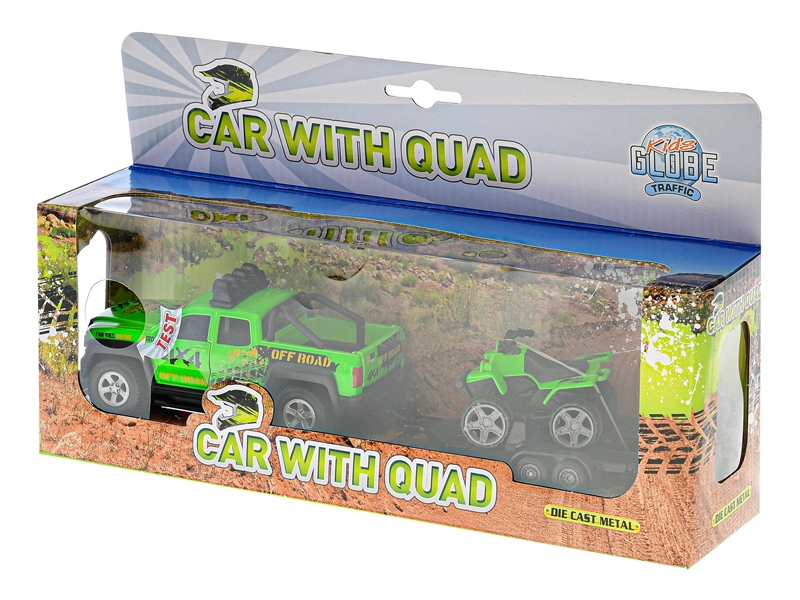 Im Set ist alles enthalten, was Kinder für sofortigen Spielspaß brauchen: Auto, Anhänger, Quad und Batterien. Die kompakte Verpackung erleichtert Aufbewahrung und Transport – perfekt für zu Hause und unterwegs.