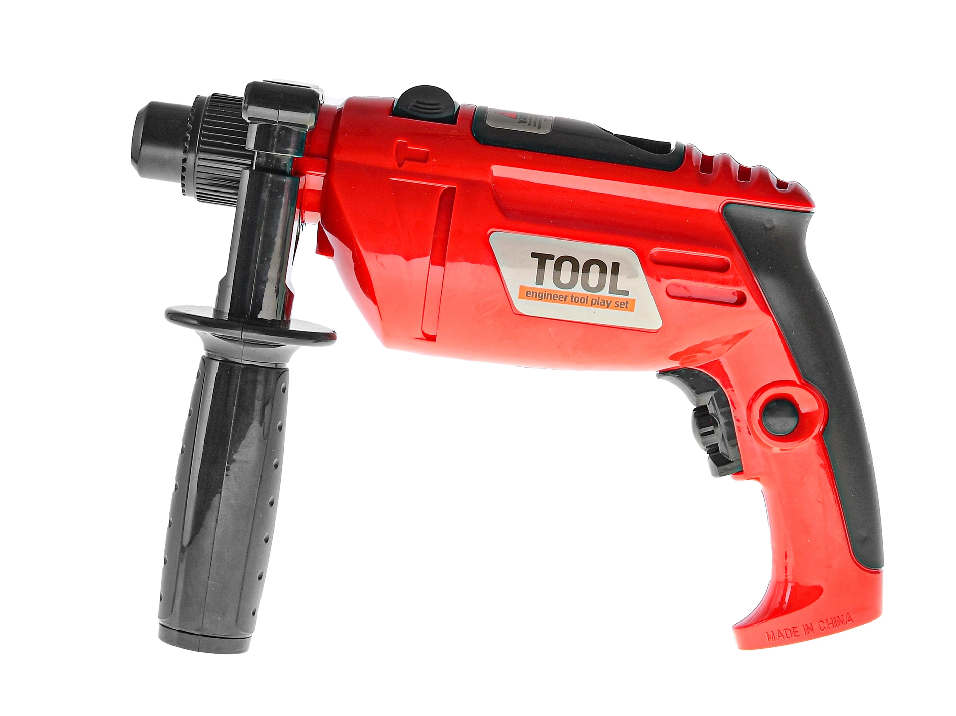 Diese rote Kinderbohrmaschine ist das ideale Spielzeug für kleine Baumeister, die die Arbeit der Erwachsenen nachahmen möchten. Dank des rotierenden Aufsatzes und des realistischen Bohrgeräuschs erleben Kinder ein echtes Heimwerkergefühl – sicher und spielerisch.