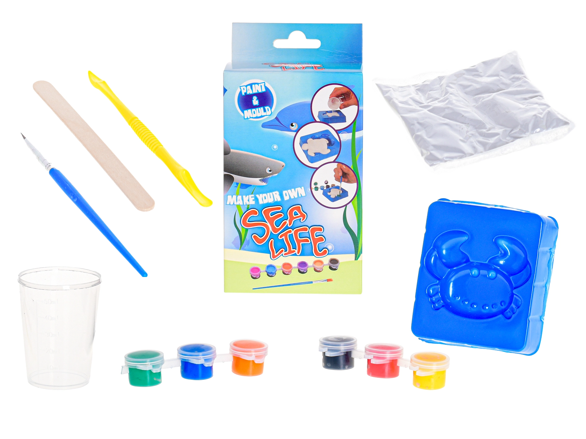 Mit diesem kreativen Set Destination Deep gestalten Kinder spielend leicht und mit viel Spaß originelle Meerestiere. Der gesamte Prozess ist einfach und sicher: Die beiliegenden Zutaten – Wasser, Farben und ein spezielles Pulver – werden gemischt und schon bald entsteht ein farbenfrohes Tier. Ideal zur Förderung von Feinmotorik, Kreativität und Fantasie.
