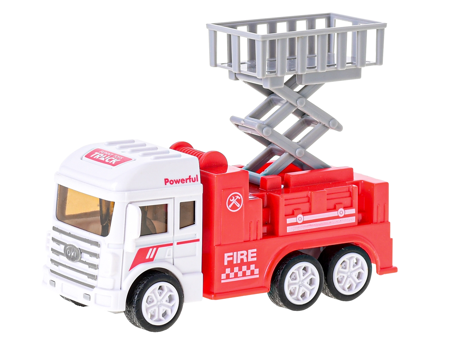 Im Set finden Sie einen Mix aus 3 Fahrzeugtypen – mit Plattform, Leiter und Wasserwerfer – ideal, um verschiedene Spielszenarien zu erstellen. Das Schwungwerk sorgt für eine gleichmäßige Fahrt ohne Batterien, sodass das Spiel sicher und unbeschwert ist.
