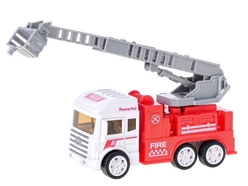 Das Feuerwehrspielzeug aus Kunststoff mit Schwungwerk begeistert alle kleinen Retter. Es bietet 3 verschiedene Varianten – mit Plattform, Leiter und Wasserwerfer. Dank des Schwungwerks fährt es nach dem Anschieben flott los und ist einsatzbereit. Die Größe von 12–13 cm, die robuste Ausführung und die einfache Handhabung machen es zu einem tollen Spielzeug für Kinder ab 3 Jahren.