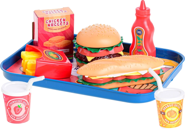 Fastfood-Spielset für Kinder mit Tablett, 26-tlg.