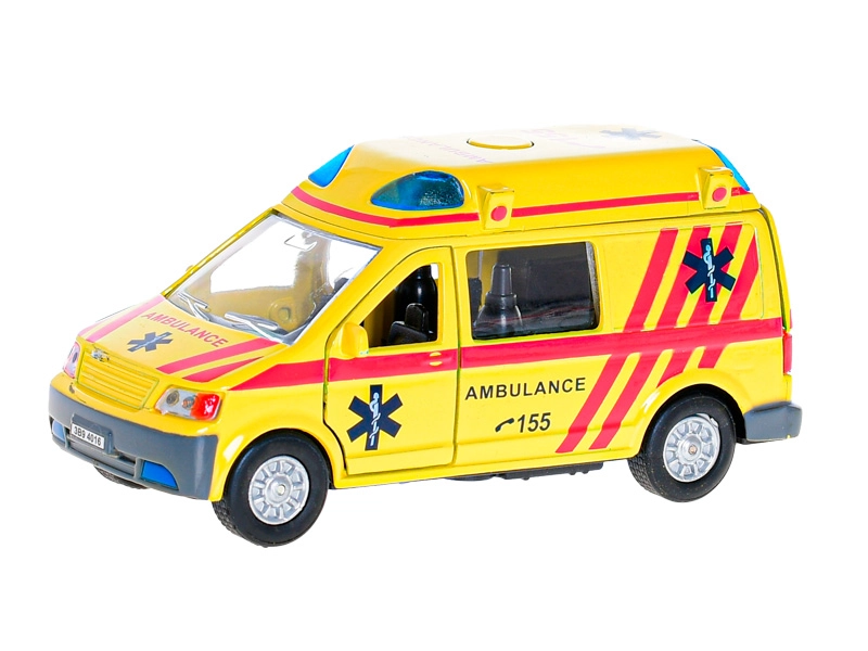 Nach dem Zurückziehen fährt das Fahrzeug dank des Rückzugsmotors automatisch vorwärts. Durch Drücken der Taste auf dem Dach aktivieren Sie blinkende Lichter und die Sirene, die dem Spiel Authentizität verleihen. Öffnende vordere und hintere Türen ermöglichen den Blick ins Innere und das Erschaffen eigener Rettungsszenarien.