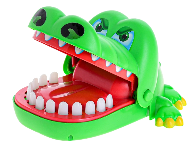 Ein unterhaltsames Familienspiel mit Krokodil, das schnelle Reflexe und Hand-Auge-Koordination trainiert. Drücke einen Zahn, aber Vorsicht – einer ist eine Falle! Ideal für mehrere Spieler und Kinder ab 3 Jahren.