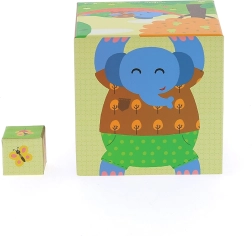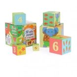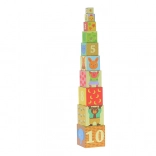 Dieser farbenfrohe Stapelturm der Marke VILAC besteht aus 10 robusten Kartonwürfeln mit nummerierten Seiten und Tierillustrationen. Kinder können die Würfel zu einem hohen Turm stapeln oder ineinanderstecken und trainieren so ganz natürlich Zahlenverständnis, Größenunterschiede und Gleichgewicht.