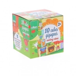 Jeder Würfel zeigt die Zahlen 1–10, Farben und Tiermotive. Kinder eignen sich spielerisch das Zählen sowie das Erkennen von Formen und Mustern an.