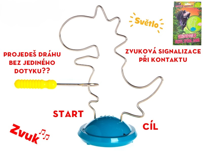 Entdecken Sie ein unterhaltsames und lehrreiches Puzzle, das Motoriktraining in eine spannende Herausforderung verwandelt. Kinder führen eine Metallschlaufe entlang der Dinosaurierbahn und vermeiden Berührungen – sobald ein Kontakt entsteht, ertönt eine akustische Signalisierung und Lichteffekte leuchten auf. So werden Konzentration, Präzision und Geduld auf natürliche Weise gefördert.