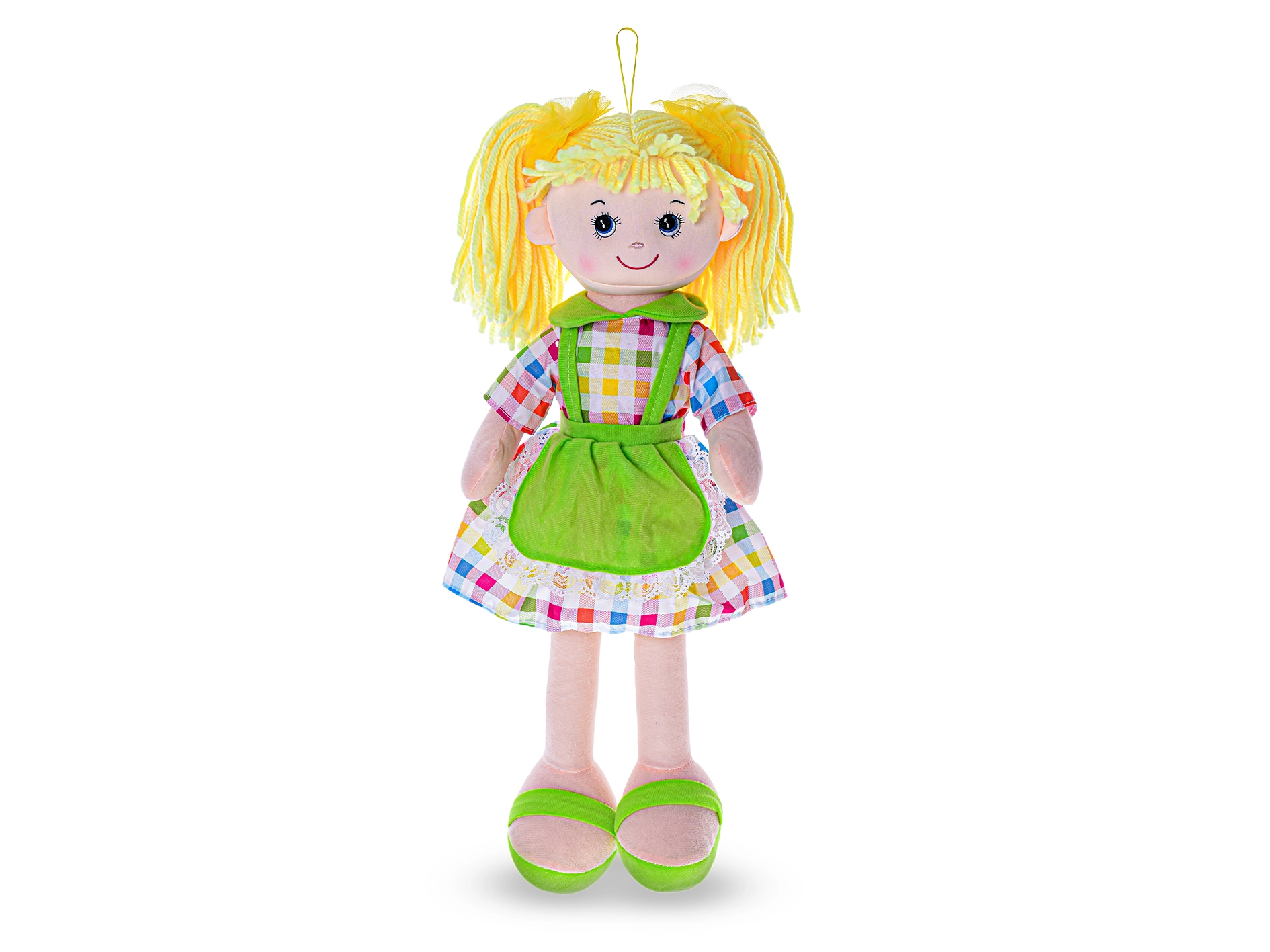 Dank der Höhe von 50 cm liegt sie hervorragend im Arm, ihre gelben Haare und das grüne Outfit verleihen ihr ein fröhliches Aussehen. Die Stromversorgung erfolgt über 3× AG13 (LR44) Batterien, die im Lieferumfang enthalten sind – die Puppe ist also bereit, Kinder sofort zu begeistern.