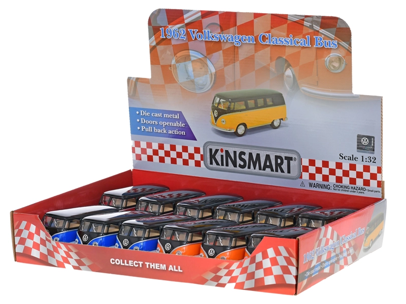 Genießen Sie das ikonische Design des klassischen Busses von 1962 im praktischen Maßstab 1:32. Dieses Modell vereint realistische Details mit einer robusten Konstruktion aus Metall und Kunststoff und ist damit ideal sowohl zum Ausstellen als auch für das tägliche Spielen.