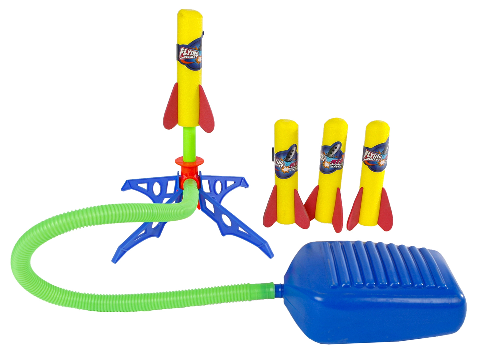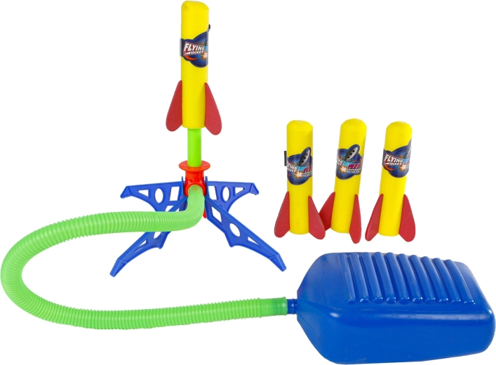 1× Abschussvorrichtung mit Fußpumpe, 4× Schaumpfeil