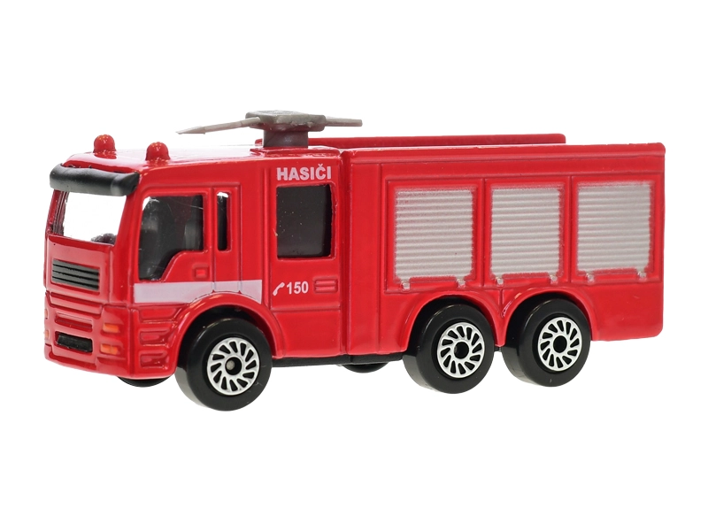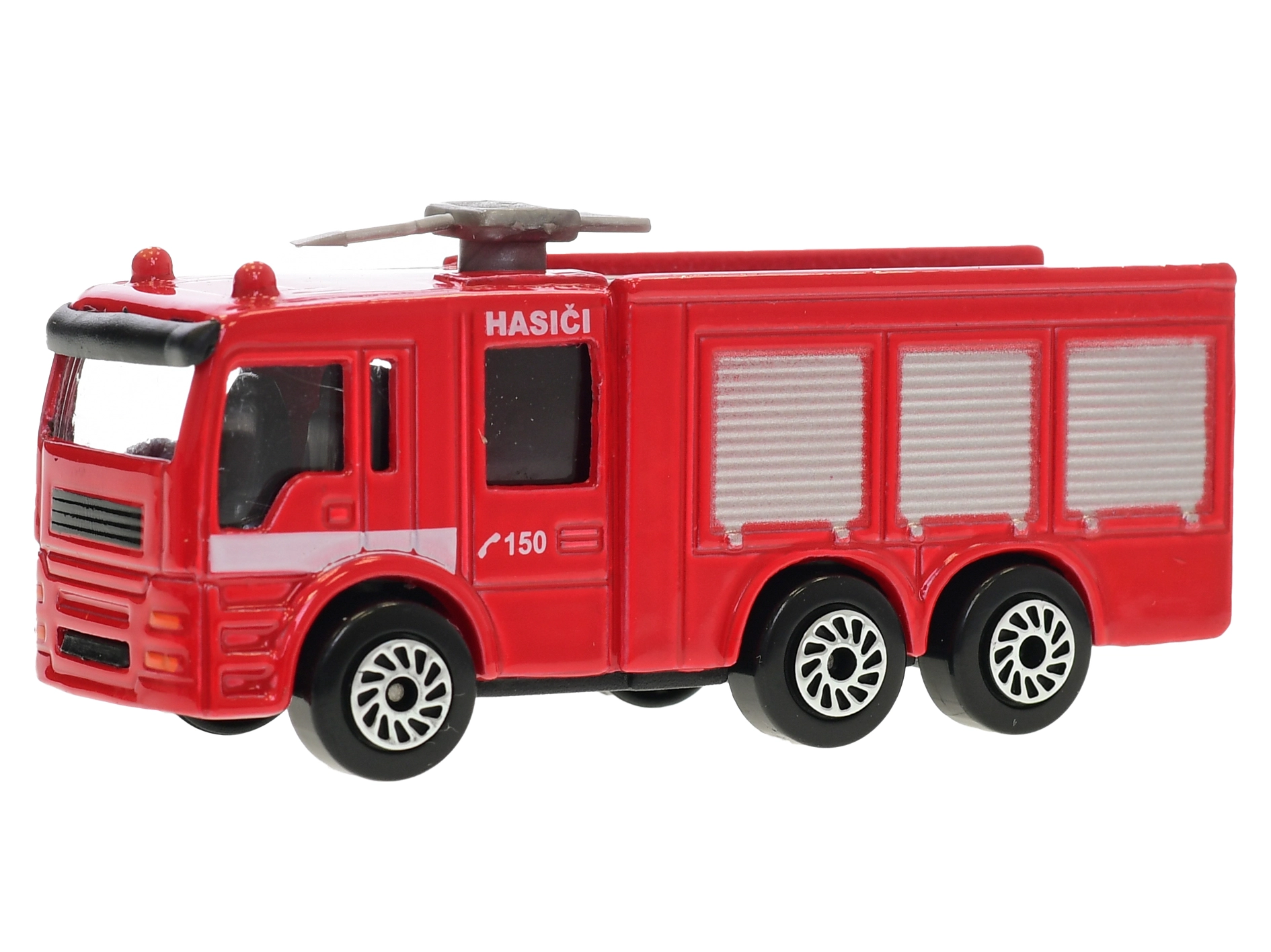 Das Auto mit freilaufenden Rädern ist direkt nach dem Auspacken einsatzbereit. Die Blisterkarte mit tschechischem Design „Hasiči 150“ erfreut kleine Rettungsfans und passt dank der kompakten Abmessungen leicht in Rucksack oder Schublade.