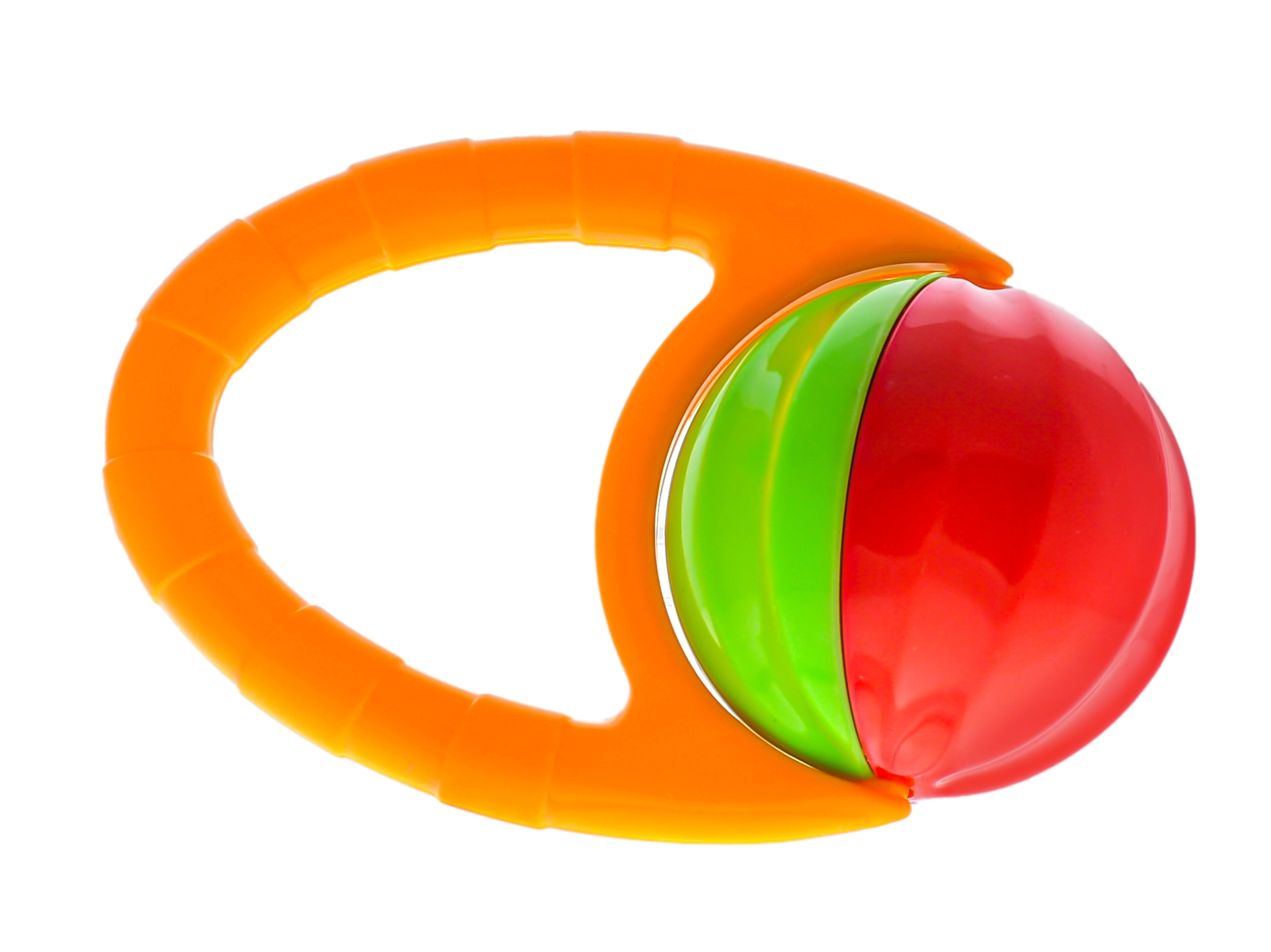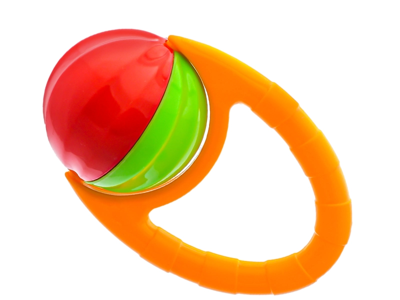 Die Rassel mit drehbarer Kugel wurde so gestaltet, dass sie Kinder bereits ab 3 Monaten begeistert. Das farbenfrohe Design und die bewegliche Kugel bieten akustische und visuelle Stimulation, die die Entwicklung der Sinne und die natürliche Neugier des Kindes unterstützt. Dank der kompakten Länge von 10 cm und der ergonomischen Form lässt sich das Spielzeug leicht greifen und hilft beim Training der Feinmotorik.
