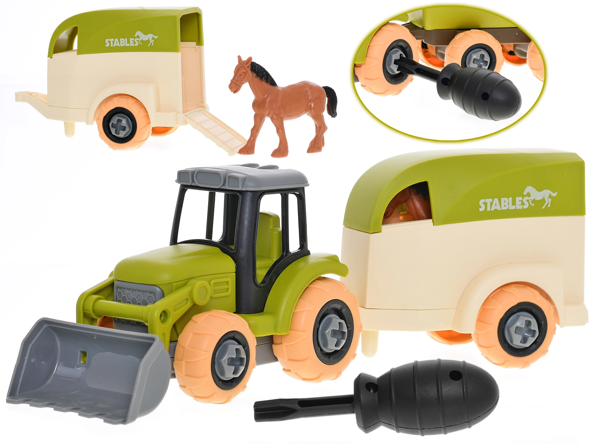 Suchen Sie ein kreatives Spielzeug, das unterhält und zugleich fördert? Dieser schraubbare Traktor aus robustem Kunststoff ermöglicht es Kindern, in die Rolle eines Bauern zu schlüpfen und grundlegende Prinzipien des Zusammenbauens zu erlernen. Dank des Zubehörs, einschließlich Anhänger und Pferdefigur, können sie realistische Bauernhofszenarien erschaffen.