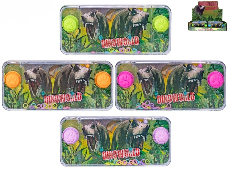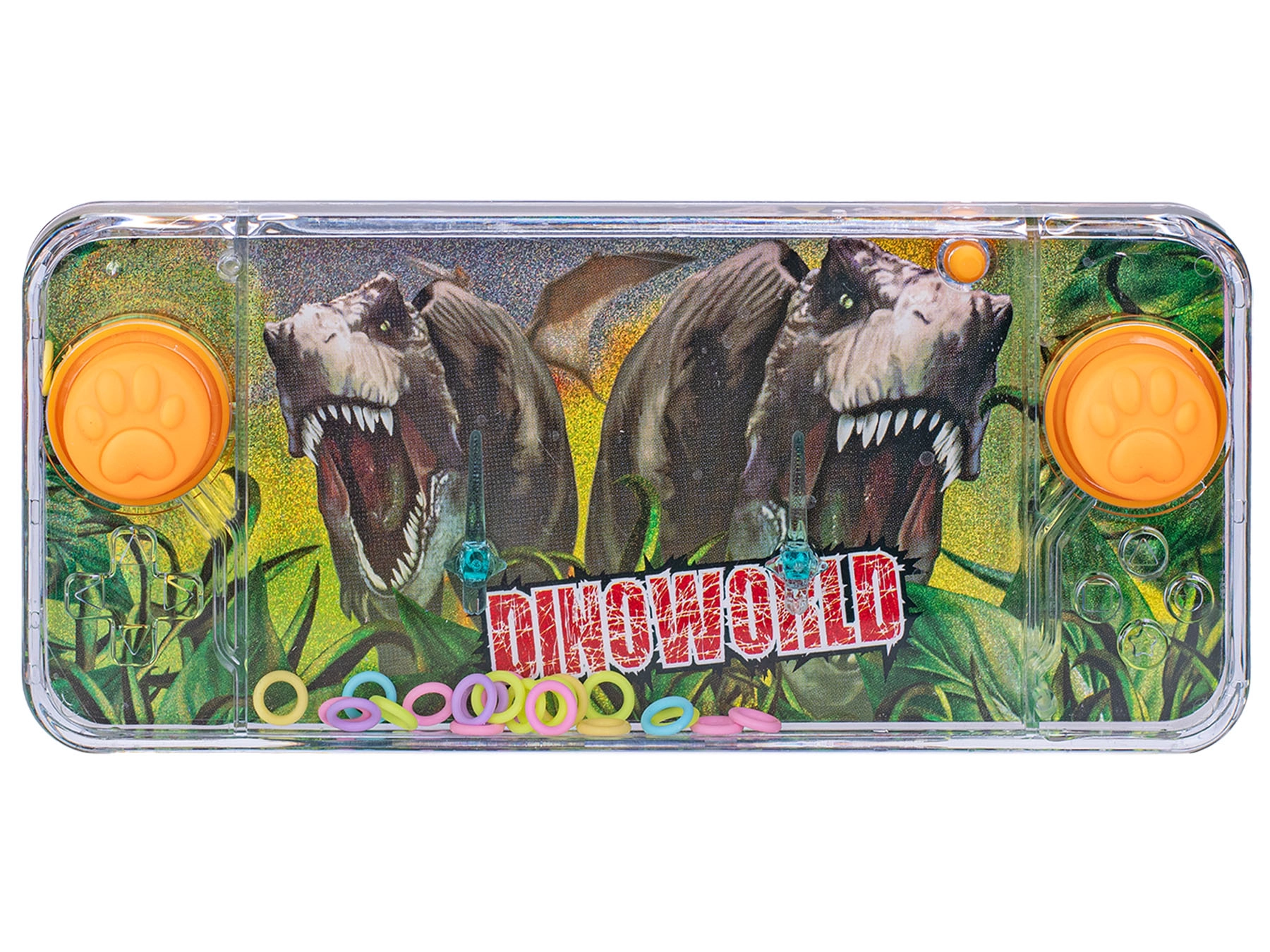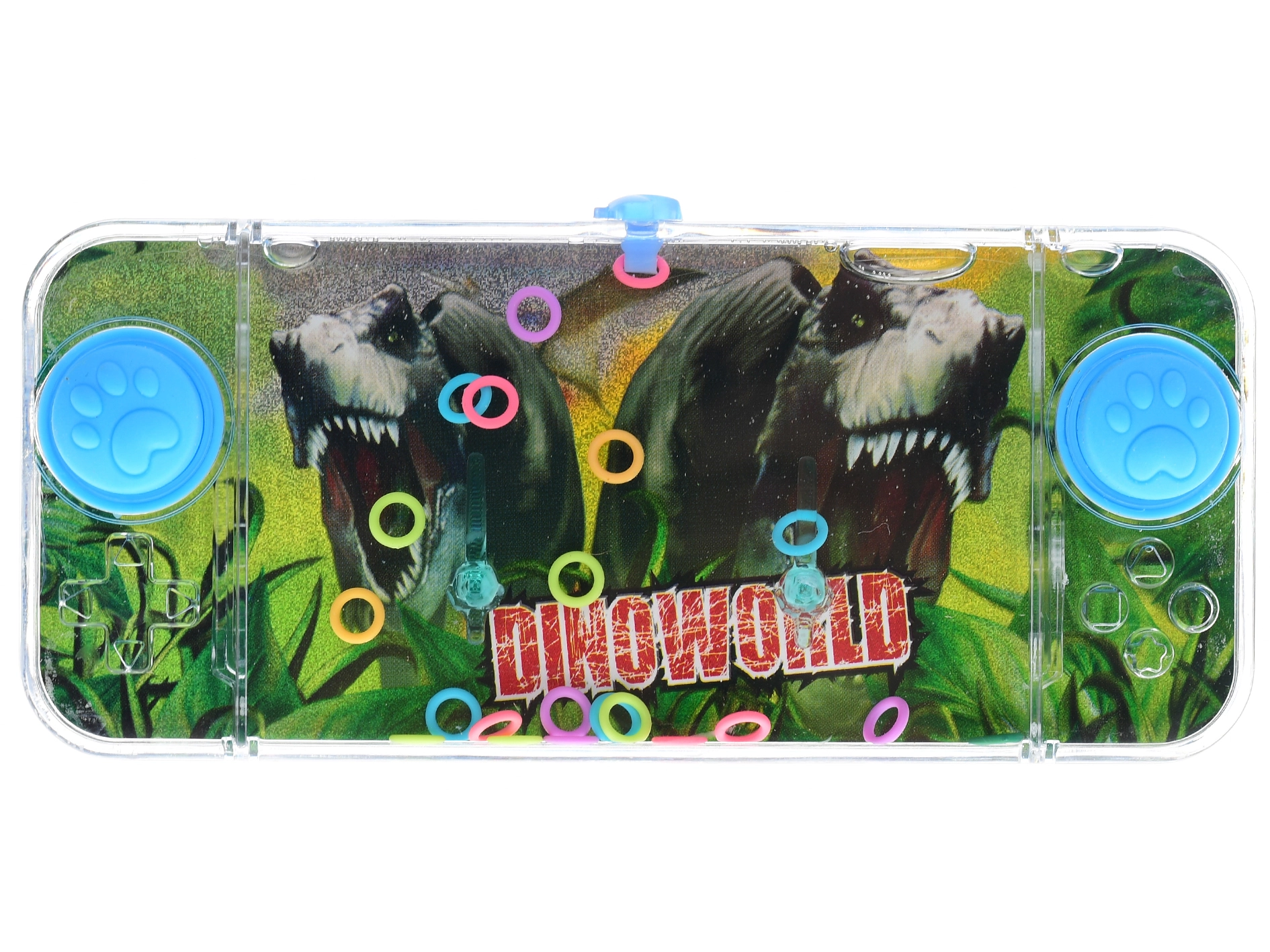 Entdecke das klassische Wasserspiel mit Dinosauriermotiv, das Kinder zu Hause und unterwegs beschäftigt. Mit einfachem Tastendruck bringst du das Wasser in Bewegung und steckst die schwimmenden Ringe auf spitze Stäbchen. Das Spiel fördert Geduld, Konzentration und die Hand-Auge-Koordination.
