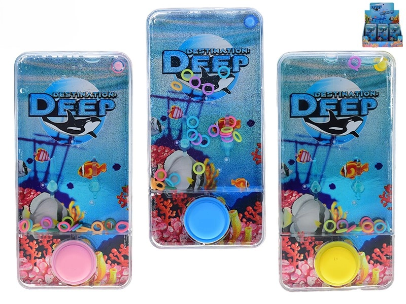 Entdecken Sie den Charme klassischer Taschenunterhaltung mit dem Wasserspiel Destination Deep. Durch Drücken der Tasten setzen Sie das Wasser in Bewegung, die Ringe drehen sich, und die Herausforderung besteht darin, sie präzise auf die Stifte zu stecken. Einfaches Prinzip, keine Elektronik und maximale Konzentration – das perfekte Spiel für kurze Pausen, Autofahrten und entspannte Momente zu Hause.