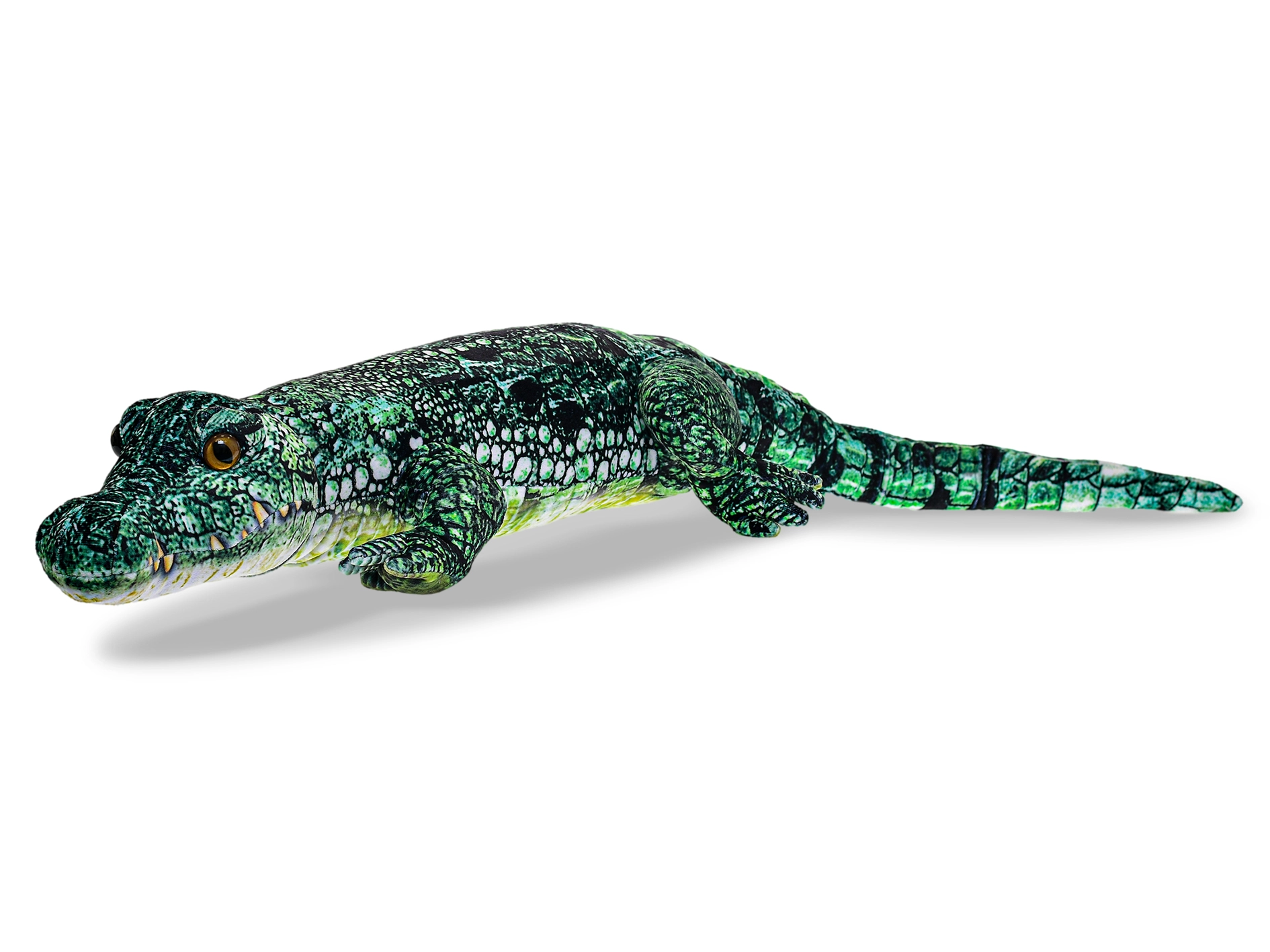 Dieser Plüsch-Alligator begeistert mit seiner großzügigen Länge von 95 cm und dem feinen Plüsch, der sich angenehm anfühlt. Dank der detaillierten Verarbeitung und der realistischen grünen Farbe wirkt er glaubwürdig, bleibt dabei jedoch maximal sicher und anschmiegsam für Kinder bereits ab der Geburt.