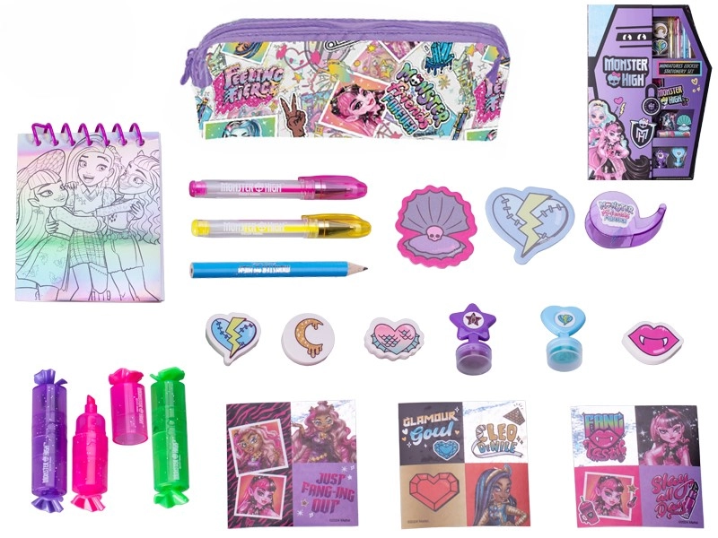 Entdecken Sie ein unterhaltsames Set für kleine Kreative – ein praktisches Mäppchen mit MONSTER HIGH-Motiv, das alles Nötige für Schul- und Freizeitgestaltung bereithält. Kinder werden die große Farbpalette lieben und ihren Stil mit Aufklebern ihrer Lieblingsfiguren ausdrücken.