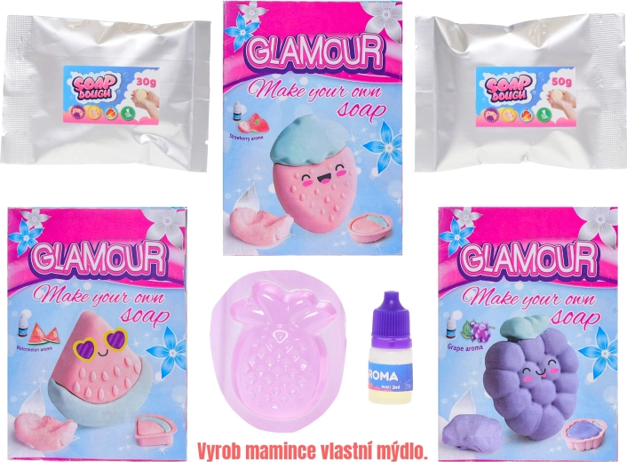 Entdecken Sie das unterhaltsame Set für kleine Kreative: Mit der Glamour-Masse stellen Kinder ganz einfach ihre eigene duftende Seife her. Das Set fördert Kreativität und Feinmotorik, bietet vier fruchtige Düfte – Ananas, Traube, Wassermelone und Erdbeere – und ist geeignet für Kinder ab 4 Jahren.