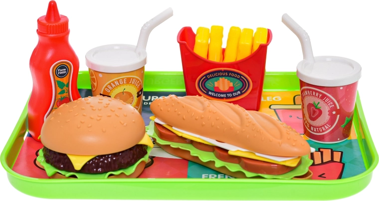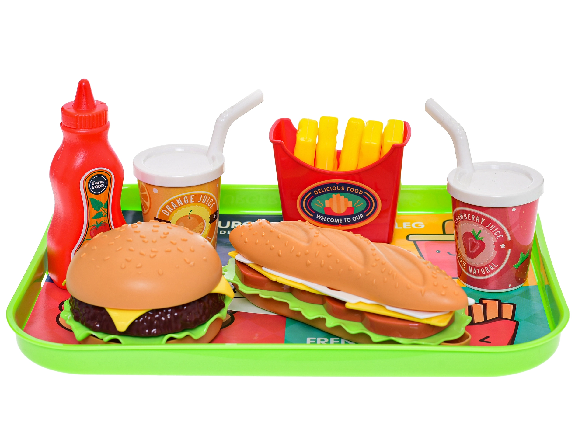 Fast-Food-Set mit Lebensmitteln und Getränken für Kinder