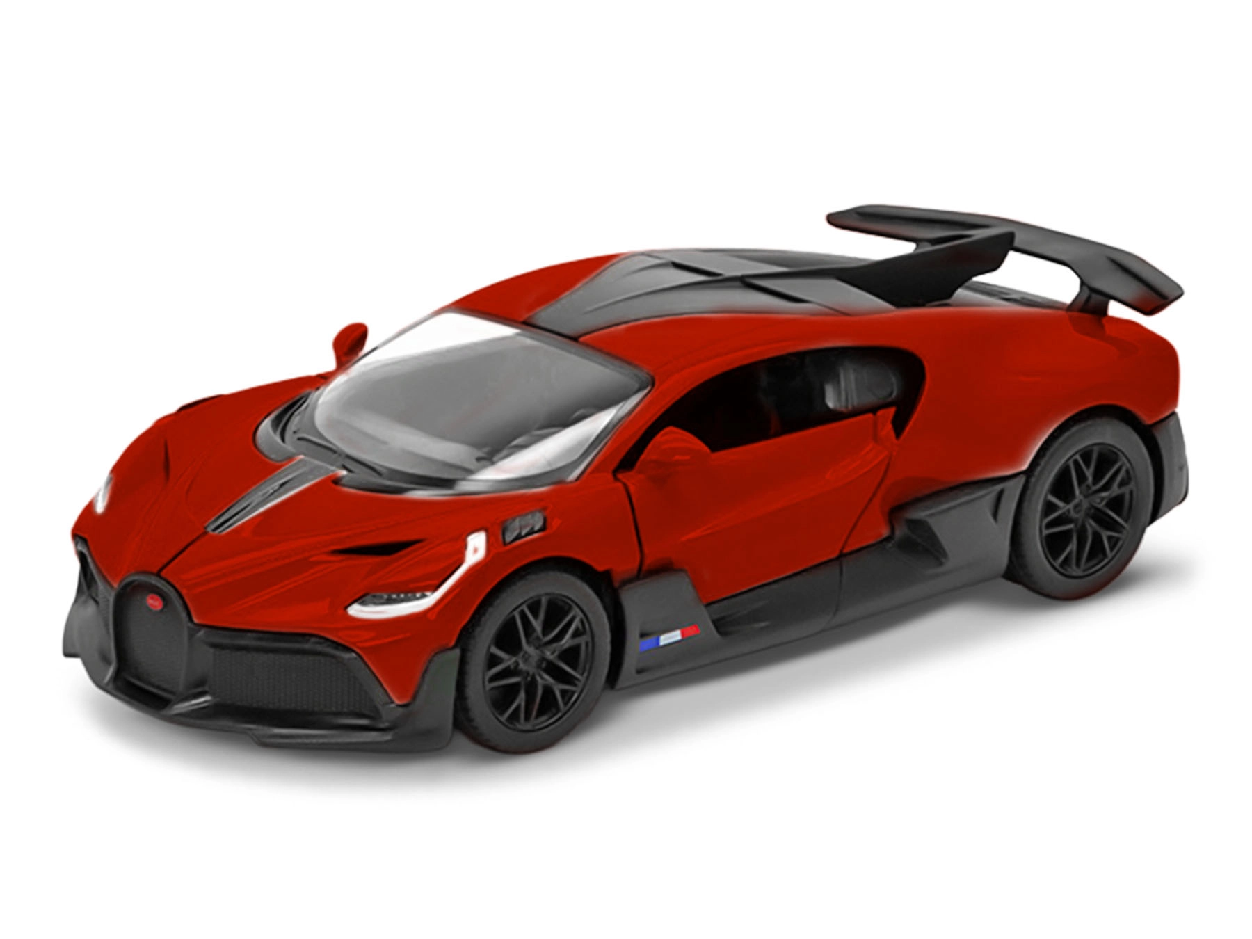 Der Kinsmart BUGATTI Divo ist ein detailliertes Metallmodell des berühmten Hypersportwagens, das durch realistische Ausführung und die spaßige Rückzugsfunktion überzeugt. Einfach zurückziehen, loslassen und das Modell fährt von selbst nach vorne. Dank der stabilen Metallkarosserie mit Kunststoffelementen hält es intensivem Spielen stand und erfreut auch anspruchsvollere Sammler.