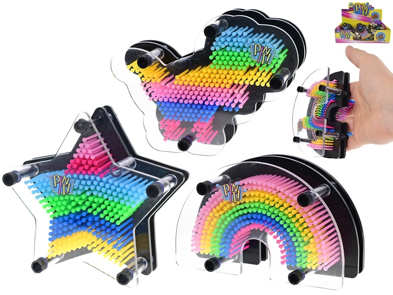 Das Spielzeug Toys & Trends Pin It! bietet eine einzigartige Möglichkeit, Kreativität und verspielte Fantasie auszudrücken. Drücken Sie einfach eine Hand, einen kleinen Gegenstand oder ein Gesichtsprofil auf die Stiftfläche und beobachten Sie, wie ein plastischer 3D-Abdruck entsteht. Dank der kompakten Maße ist es ideal für zu Hause und unterwegs.