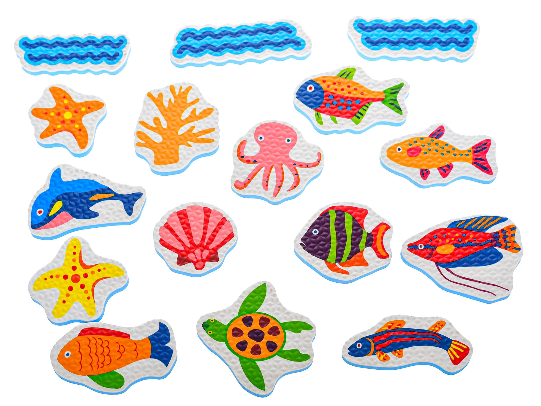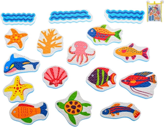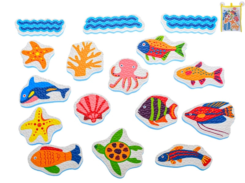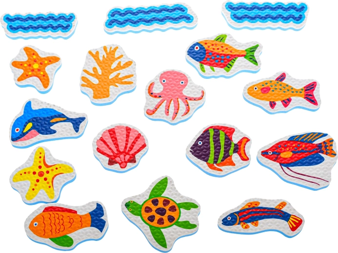 Die Schaumstoff-Badesticker mit Meerestieren verwandeln jedes Bad in ein spielerisches Abenteuer. Kinder können eigene Unterwassergeschichten erfinden, Farben und Formen lernen und zugleich die Feinmotorik trainieren. Leichte Schaumstofffiguren haften nach dem Anfeuchten auf glatten Oberflächen wie Fliesen oder Badewannenwänden und lassen sich nach dem Spielen einfach im beiliegenden Netz verstauen.