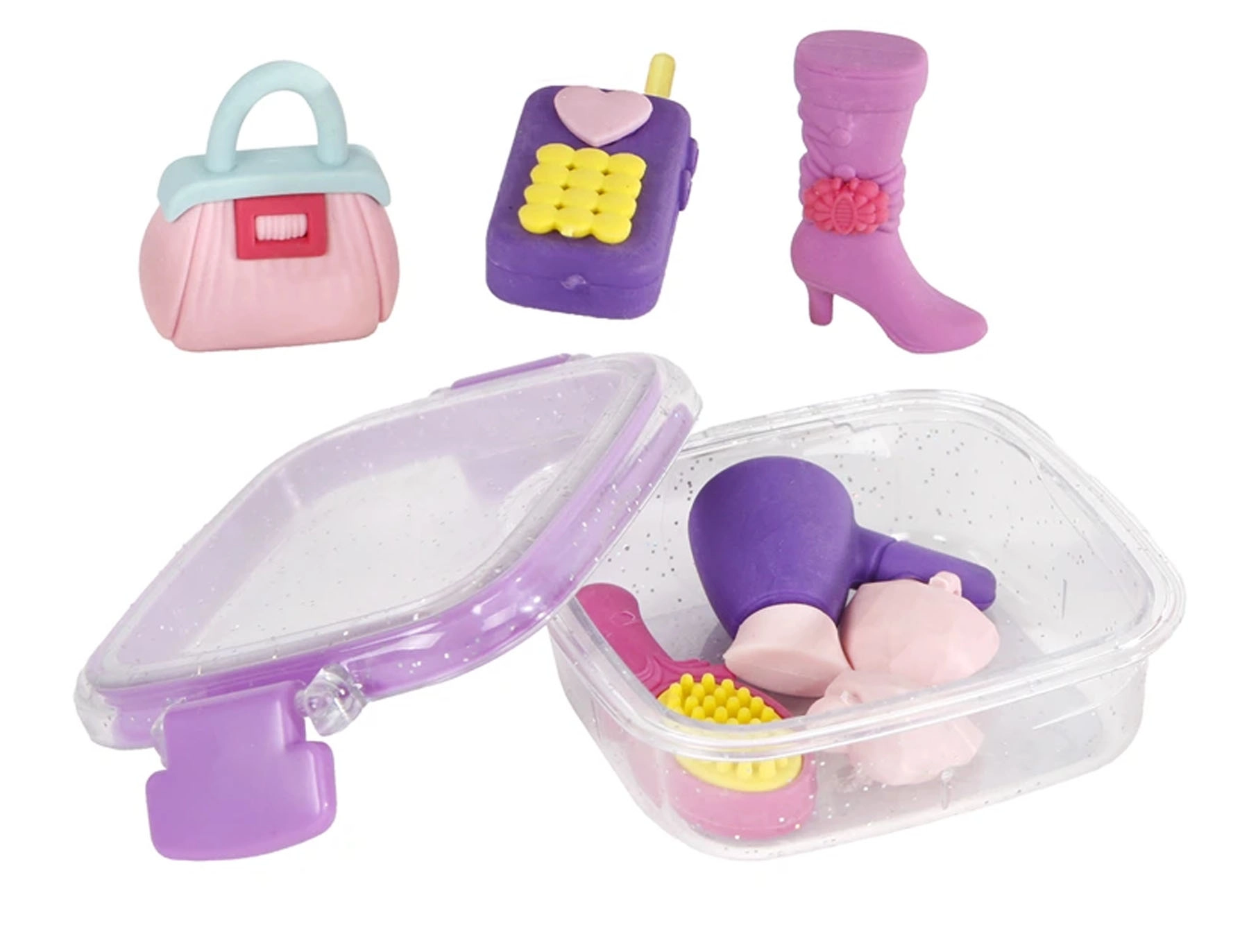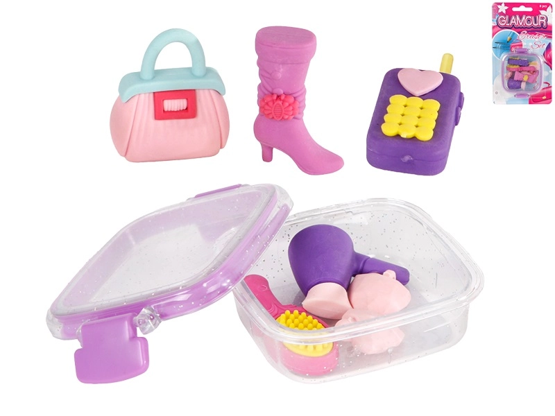 Entdecken Sie ein verspieltes und stylisches Radiergummi-Set, das das Schulschreiben zum Vergnügen macht. Acht einzigartige Motive von Modeaccessoires beeindrucken optisch und bieten zugleich zuverlässiges Radieren dank hochwertigem Gummi. Geeignet für Schule, Hausaufgaben und kreative Projekte.
