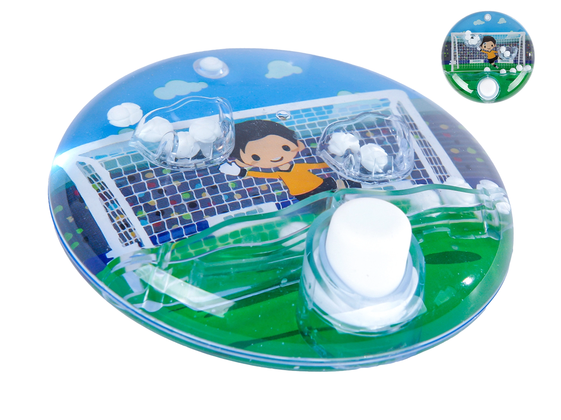 Das Wasserspiel Fußball ist ein einfaches und fesselndes Taschenspiel, das Bewegungskoordination, Geduld und Konzentration fördert. Drücke einfach die Tasten, verfolge den Wasserstrom und versuche, die Kügelchen ins Tor zu befördern. Dank der robusten Ausführung ist es ideal für den täglichen Spielspaß zu Hause und unterwegs.