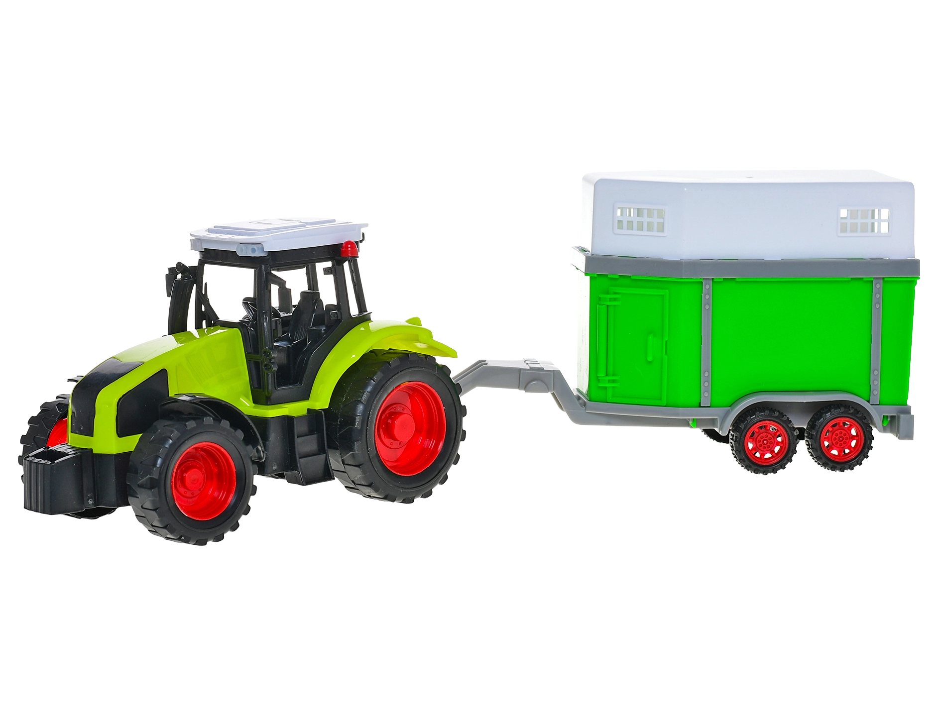 Der Traktor mit Pferdetransportanhänger ist das ideale Spielzeug für Kinder, die Bauernhofabenteuer lieben. Dank des Schwungradantriebs bewegt sich der Traktor gleichmäßig und imitiert eine echte Fahrt, was realistisches Spiel und die Entwicklung der Fantasie fördert. Der Anhänger ist für den Transport von Pferden ausgelegt, sodass Kinder eigene Geschichten und Bauernhofszenarien erschaffen können.