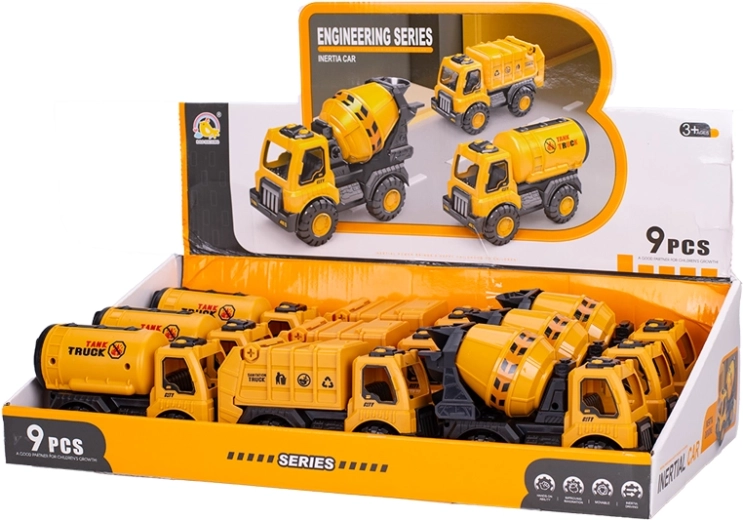 Dieses vielseitige Set an Baufahrzeugen bietet drei beliebte Typen – Betonmischer, Tankwagen und Containerfahrzeug – jeweils in kompakter Länge von 15 cm. Der Schwungradantrieb sorgt für einfache und fesselnde Unterhaltung: Fahrzeug kurz anschieben und die gleichmäßige Vorwärtsfahrt beobachten. Die hochwertige Kunststoffausführung garantiert Robustheit und unbeschwerte Nutzung im Innen- wie Außenbereich.