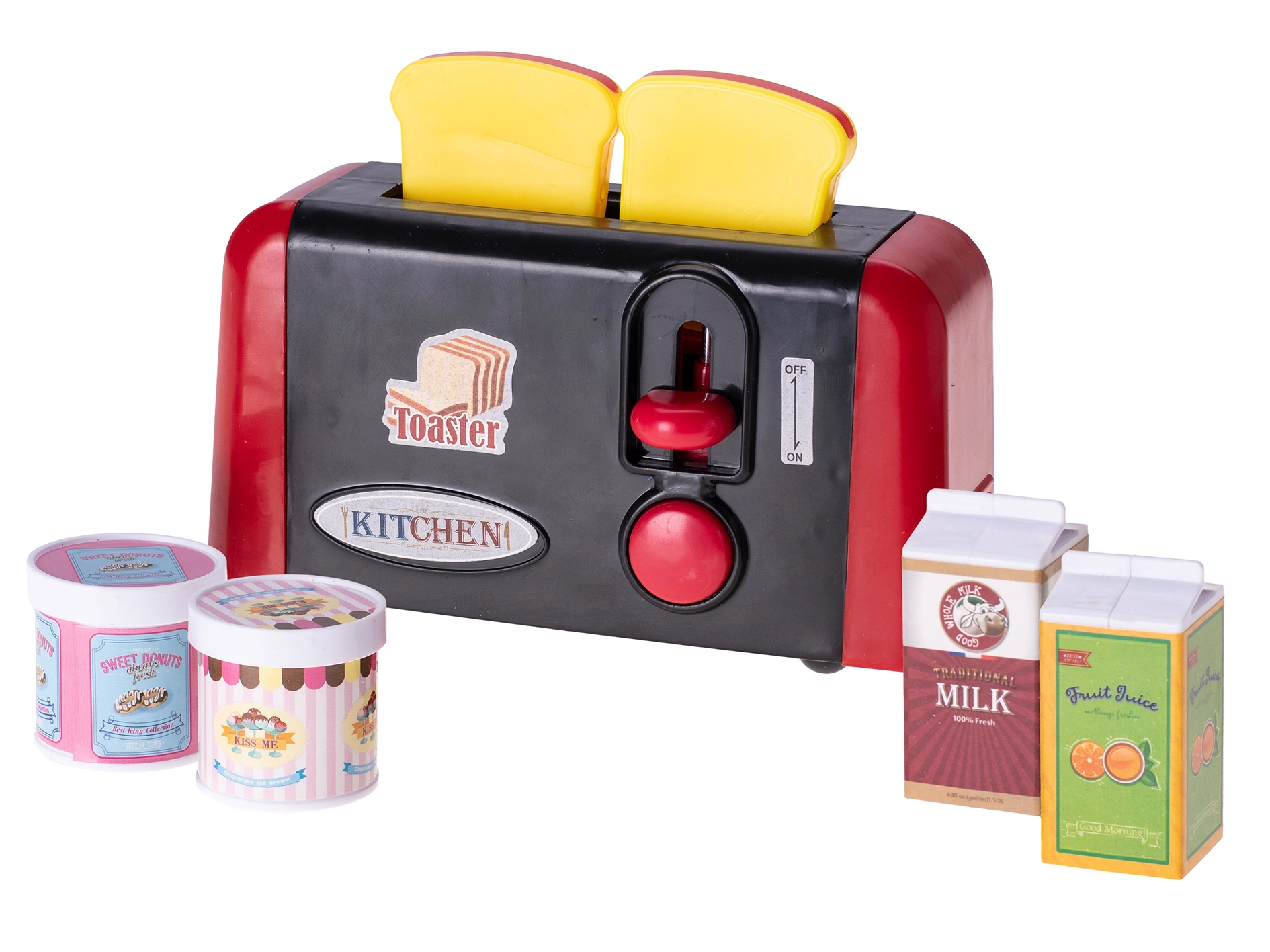 Gönnen Sie Ihren kleinen Köchinnen und Köchen ein stylisches Accessoire für die Spielküche. Der Aufzieh-Toaster mit Zubehör ermöglicht Kindern, die echte Frühstückszubereitung nachzuahmen, und vermittelt ein authentisches Kocherlebnis. Dank der kompakten Maße passt er problemlos in jede Spielküche.