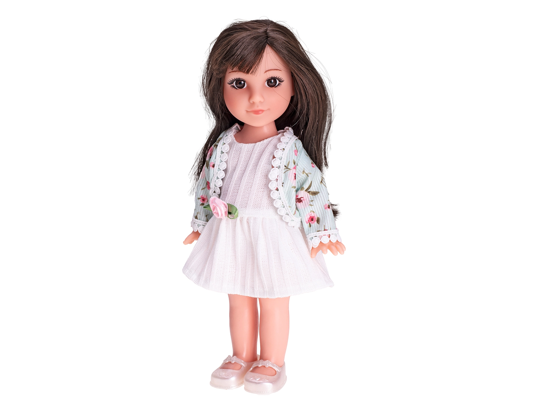 Die Puppe ist in zwei stilvollen Ausführungen erhältlich: Latzhose mit gestreiftem T-Shirt für einen verspielten Look oder elegantes Kleid mit Bolero für festliche Anlässe. Sie wird in einer Geschenkbox geliefert und eignet sich perfekt für Geburtstage, Weihnachten oder als liebevolle Überraschung.
