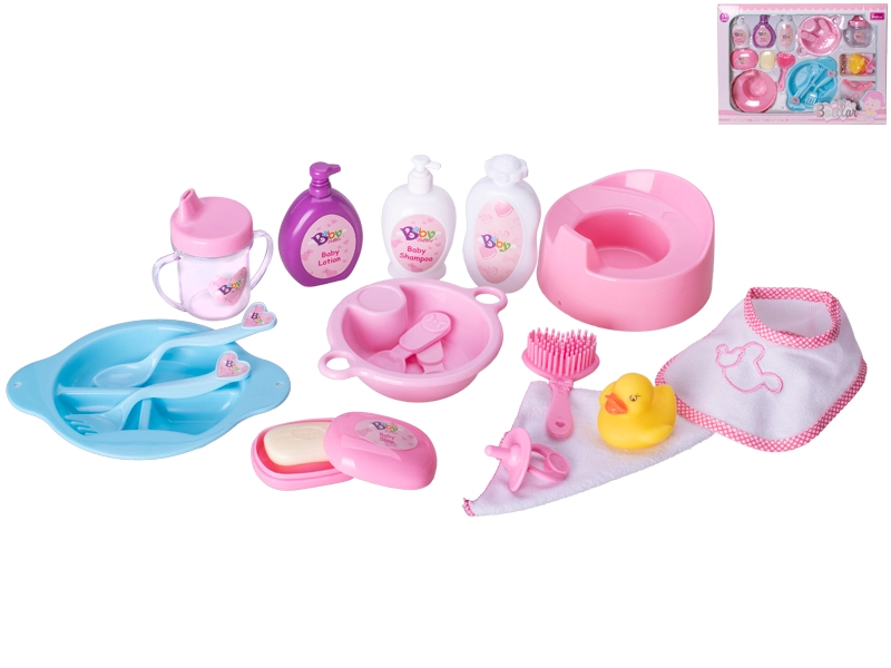 Dieses vielseitige Baby-Zubehörset begeistert alle kleinen Fürsorger. Es bietet eine bunte Auswahl an Zubehör, mit dem Kinder die tägliche Pflege eines Babys nachahmen, ihre Fantasie entwickeln und Verantwortungsbewusstsein lernen können. Die hochwertige Ausführung und sanften Farben sorgen für ein angenehmes und sicheres Spielerlebnis.