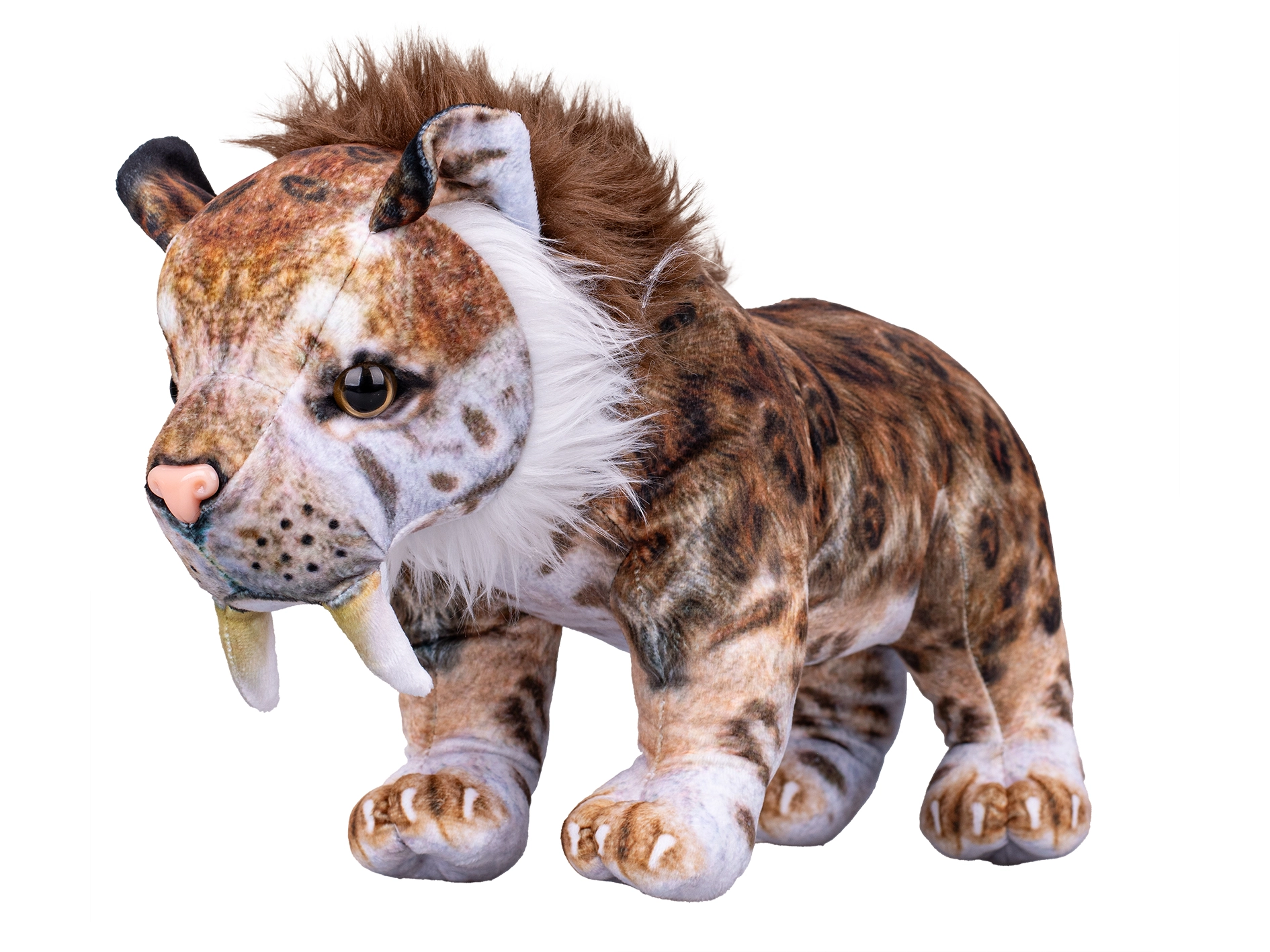 Entdecken Sie den Zauber prähistorischer Tiere mit diesem Plüsch-Säbelzahntiger, der dank seiner stehenden Position außergewöhnlich lebensecht wirkt. Aus hochwertigem, samtweichem Plüsch gefertigt, bietet er Kindern kuscheligen Komfort und Eltern die Gewissheit einer sicheren Wahl für die Kleinsten.