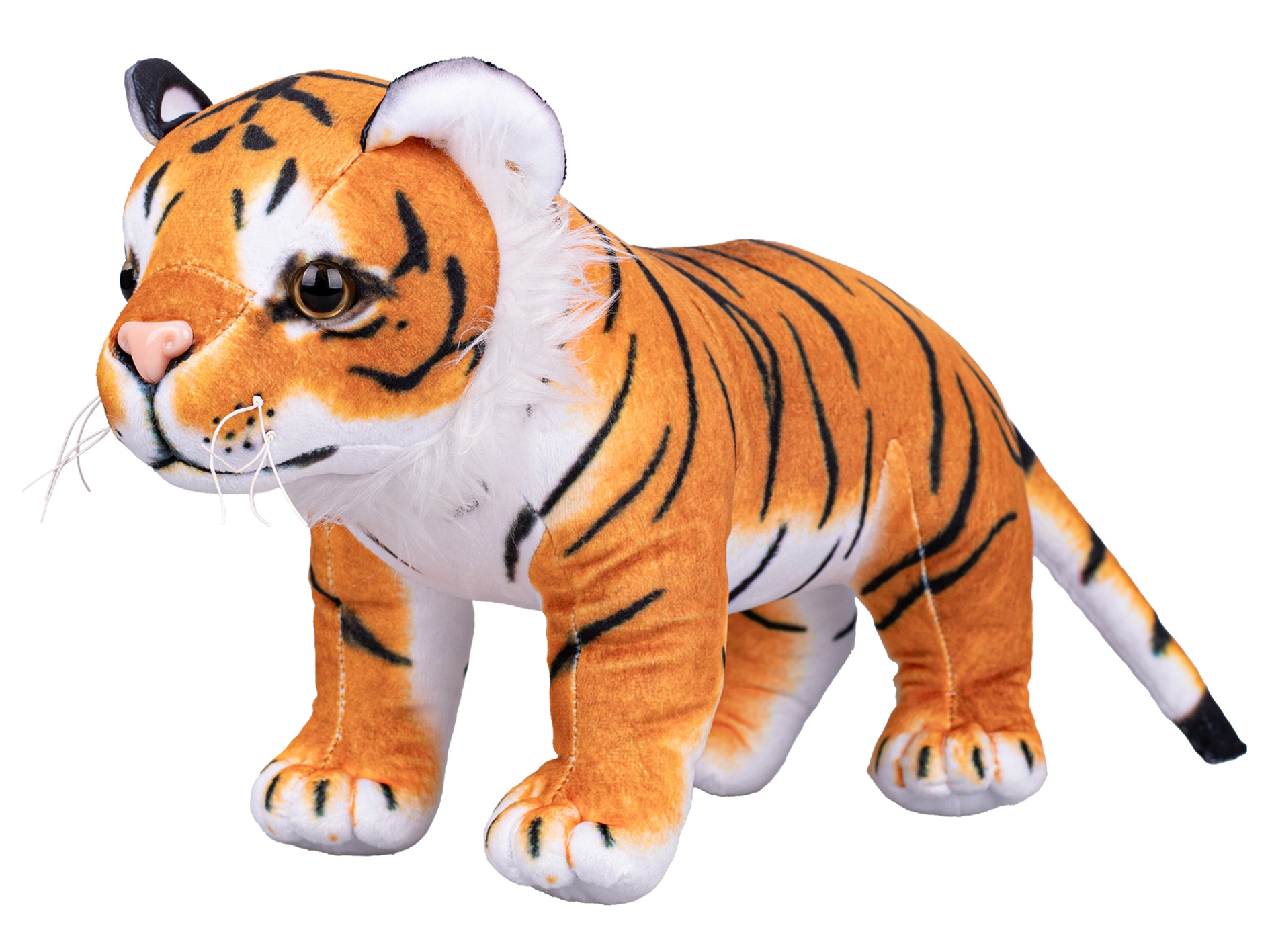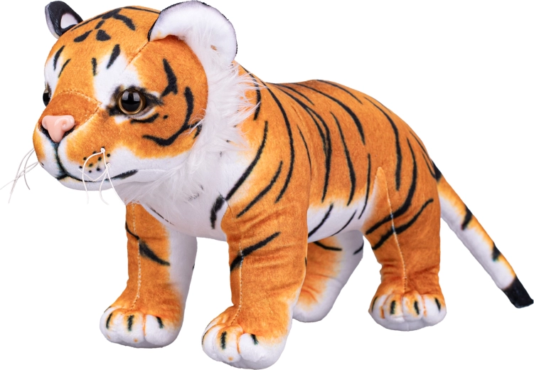 Die stehende Position macht diesen Tiger nicht nur zu einem kuscheligen Spielgefährten, sondern auch zu einer stilvollen Dekoration. Die praktische Beutelverpackung erleichtert Transport und Aufbewahrung – ideal für unterwegs oder als Geschenk.
