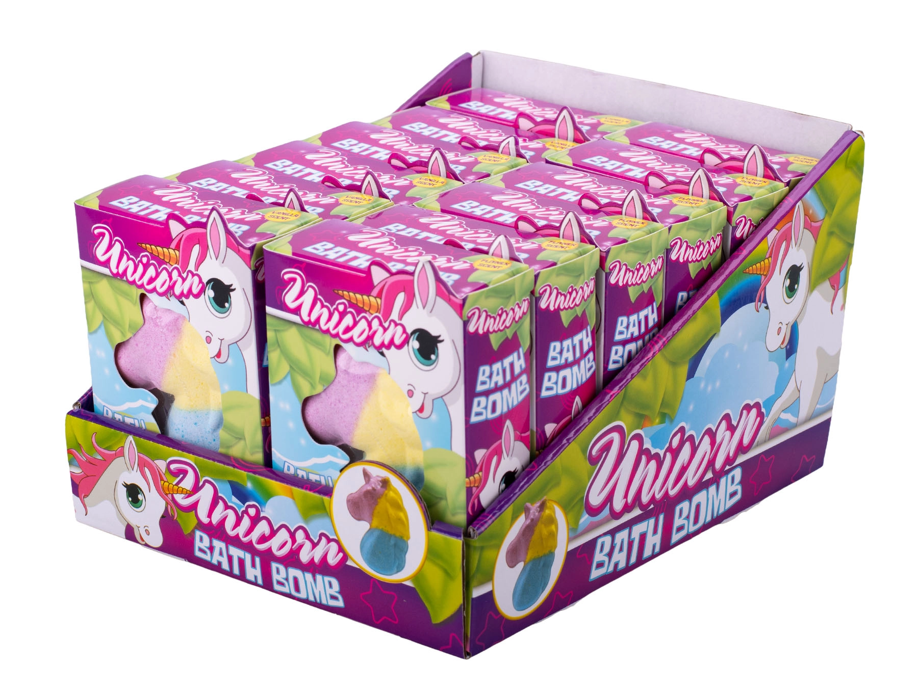 Entdecken Sie den Zauber der Baderoutine mit der Badebombe Einhorn. Nach dem Einwerfen in die Wanne beginnt sie sich aufzulösen, leicht zu sprudeln und erfüllt das Wasser mit einem blumigen oder vanilligen Duft. Dank fröhlicher Farben und der attraktiven Form lieben sie Kinder ab 3 Jahren ebenso wie Erwachsene, die einen Moment der Ruhe und Freude suchen.