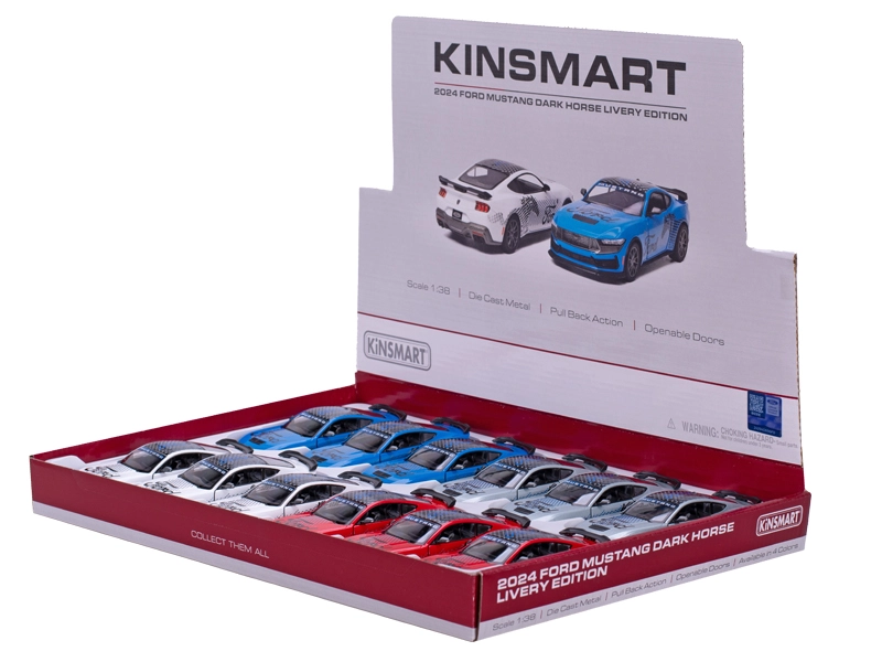 Erleben Sie authentischen Fahrspaß mit dem ikonischen Sportwagen im handlichen Format. Das Kinsmart Ford Mustang Dark Horse Livery-Modell überzeugt mit präzisen Karosseriedetails, realistischem Innenraum und geschmeidigem Fahrverhalten dank des Rückzieh-Mechanismus. Die zu öffnenden Türen unterstreichen die Realitätsnähe und eignen sich sowohl fürs Spielen als auch zum Ausstellen in der Vitrine.