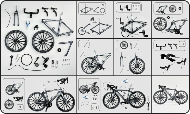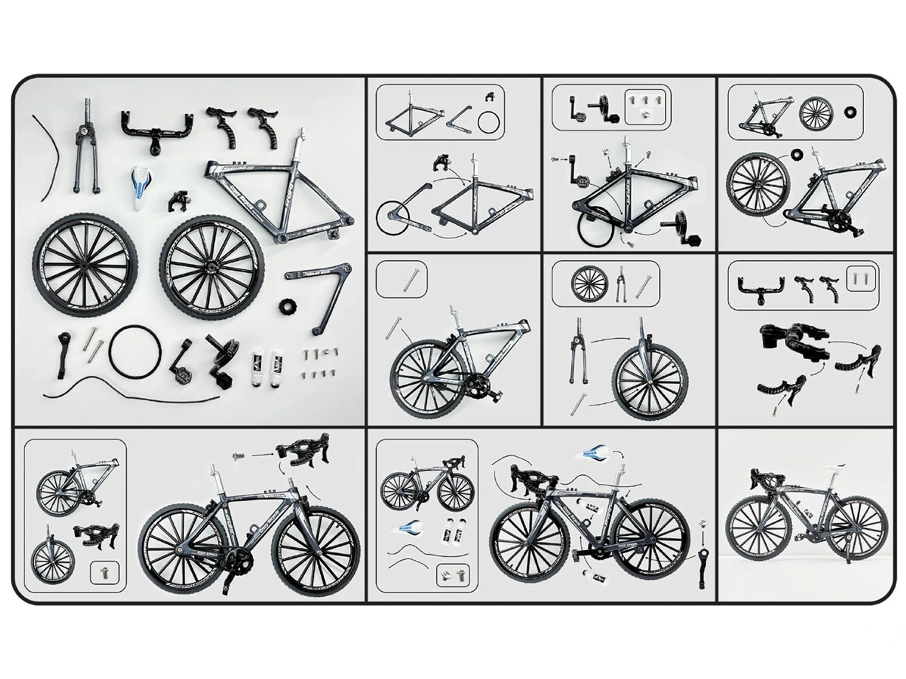 Der Metall-Bausatz Rennrad ist die ideale Wahl für kleine Tüftler und Radsportbegeisterte. Übersichtlich gestaltete Teile, praktisches Werkzeug im Set und ein klares Konzept sorgen dafür, dass auch Einsteiger die Montage problemlos meistern. Das fertige Modell überzeugt durch Langlebigkeit, detailreiche Ausführung und eine beeindruckende Optik in den Farbvarianten Rot, Gelb und Schwarz.