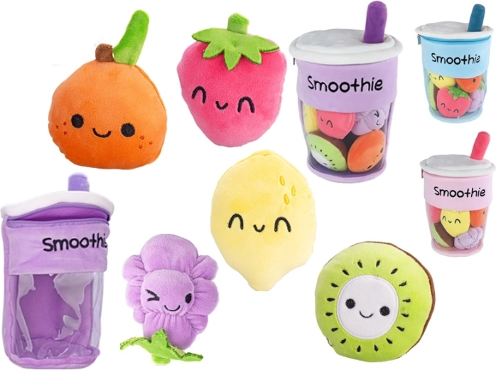 Der Plüsch-Smoothie-Becher Fluffy Menu ist der ideale Begleiter zum Spielen, Kuscheln und als stilvolle Deko fürs Kinderzimmer. Die weiche Oberfläche ist angenehm zu berühren und sicher für die Kleinsten, während fünf niedliche Obststücke Entdeckungslust und Fantasie fördern.
