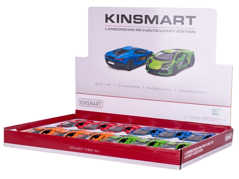 Entdecken Sie das präzise gefertigte Metallmodell des Sportwagens Lamborghini Revuelto, das die Linien und den Charakter des echten Supersportwagens originalgetreu widerspiegelt. Dank des Maßstabs 1:38 und der Länge von 13 cm macht es sowohl im Regal als auch auf dem Schreibtisch eine hervorragende Figur und erfreut jeden Fan schneller Autos.
