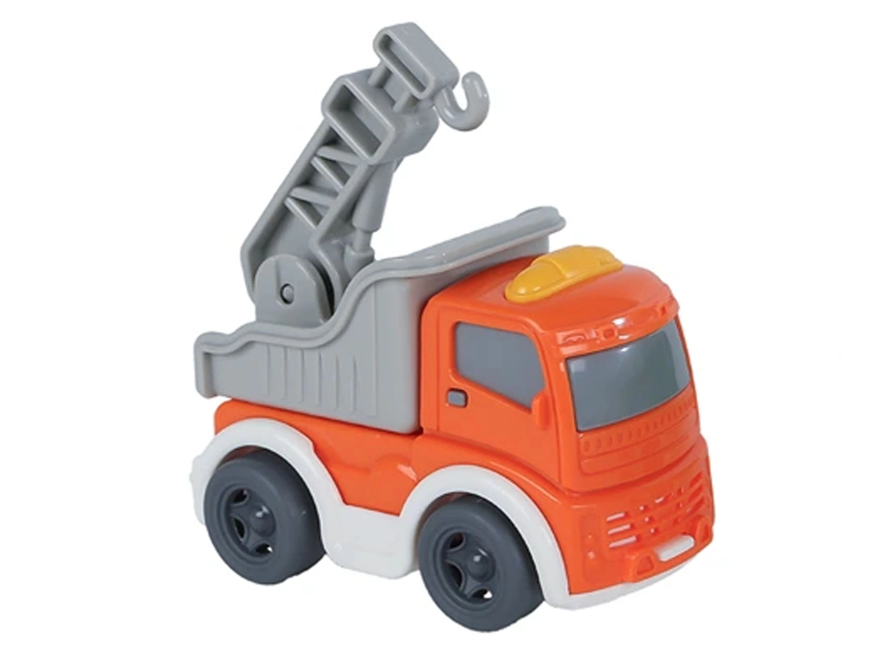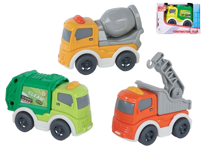 Das Spielzeug ist in drei beliebten Varianten erhältlich: Betonmischer, Kran und Müllauto. Dank der kompakten Maße passen die Fahrzeuge in die Tasche oder den Rucksack und sind somit ideal für unterwegs oder das Kinderzimmer. Geliefert in einer Schachtel – ein toller Geschenktipp für kleine Fans von Baufahrzeugen.